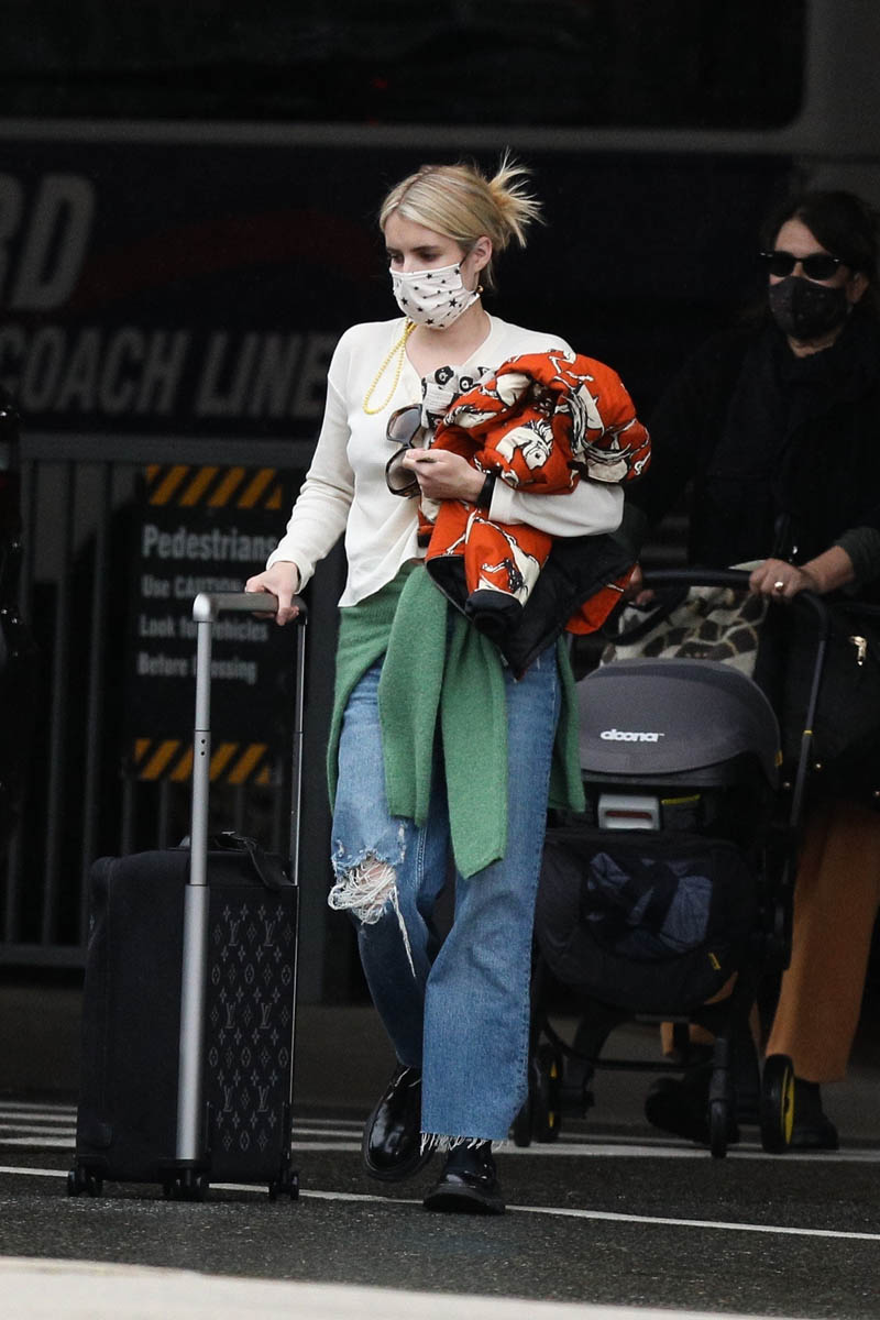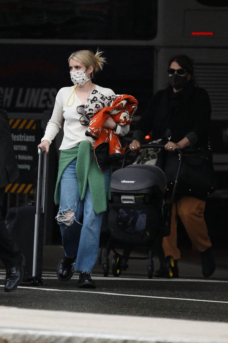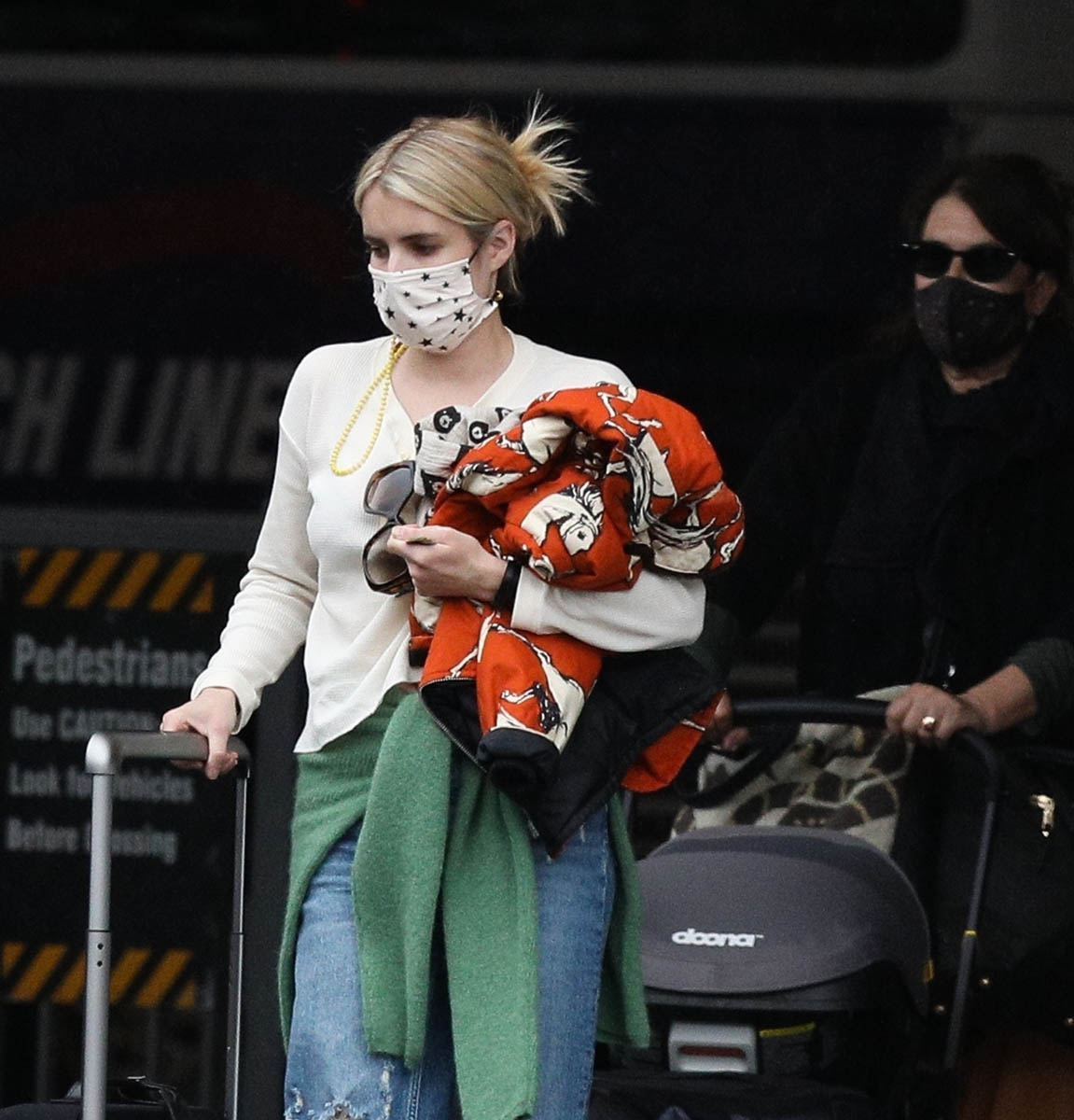 This is the first time Emma will be back on set since she and Garrett Hedlund welcomed their first child, Rhodes, back in December. And you can see she’s travelling with the baby and a lot of luggage because while I haven’t had a kid myself, I know they come with a lot of gear. So this is a good opportunity to talk about the extra tax, so to speak, that mothers in Hollywood – and so many other industries – have to pay when they take on a job after having children.
