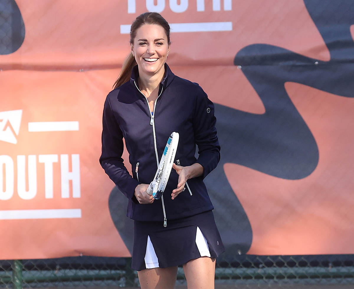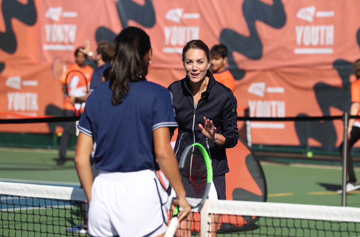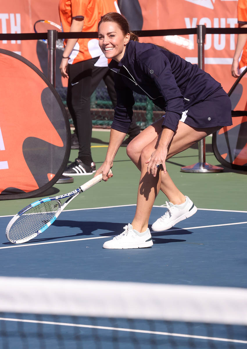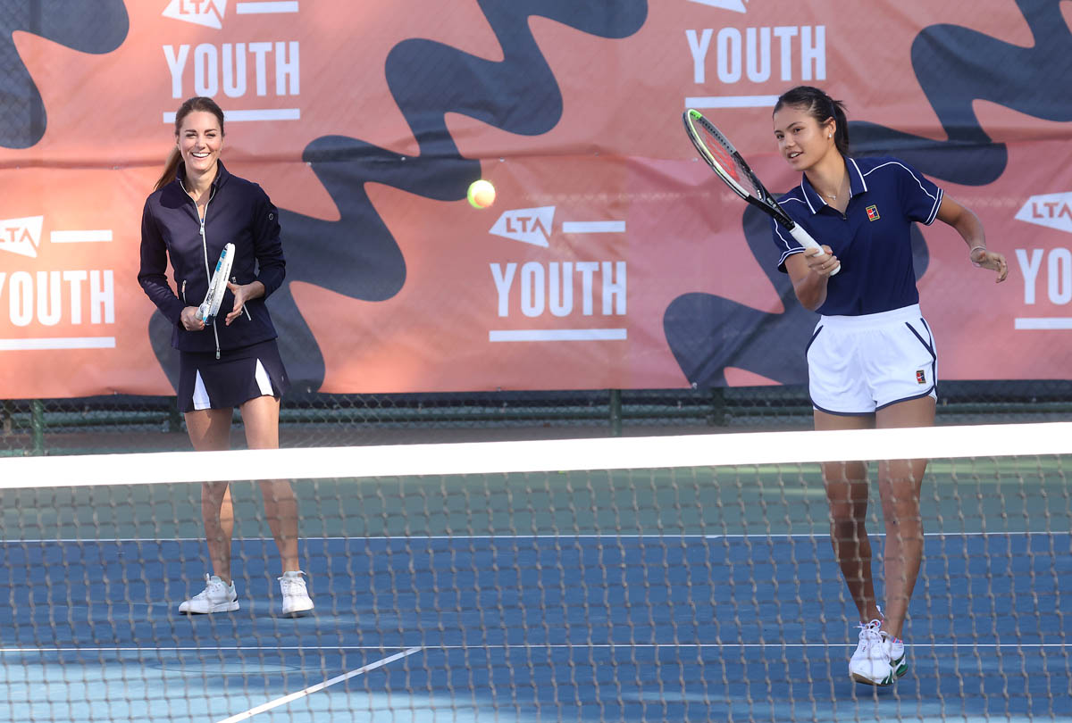 Anyway, here are some pictures of Kate on Friday with US Open champion Emma Raducanu at the National Tennis Centre. Kate, a big tennis fan, put on a tennis outfit for the occasion, and took a few shots on the court. She looks great. Ordinarily a photo opportunity like this, with the future Queen in a tennis skirt, not something we see all time, would be a major story, get mega play.