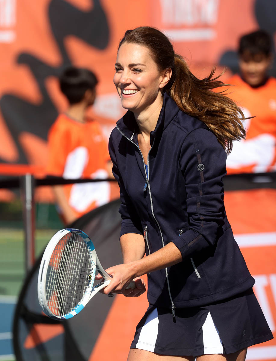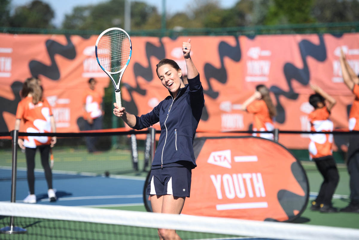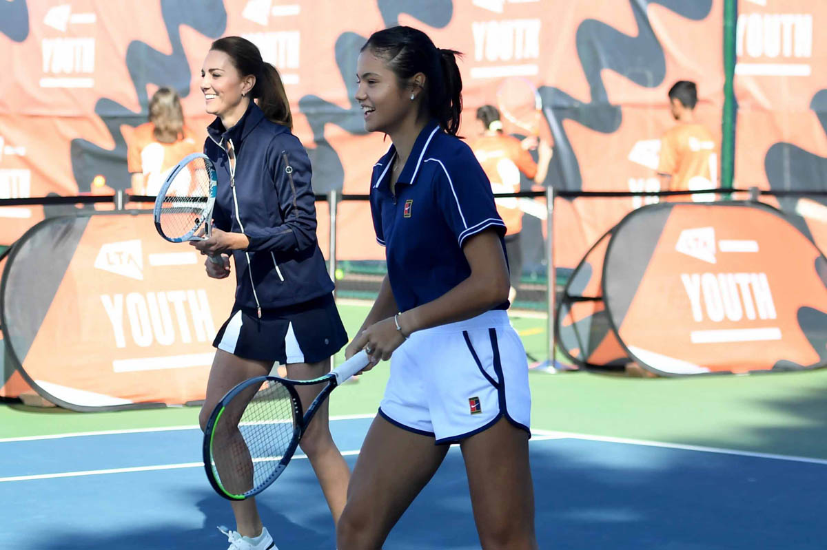 Anyway, here are some pictures of Kate on Friday with US Open champion Emma Raducanu at the National Tennis Centre. Kate, a big tennis fan, put on a tennis outfit for the occasion, and took a few shots on the court. She looks great. Ordinarily a photo opportunity like this, with the future Queen in a tennis skirt, not something we see all time, would be a major story, get mega play.
