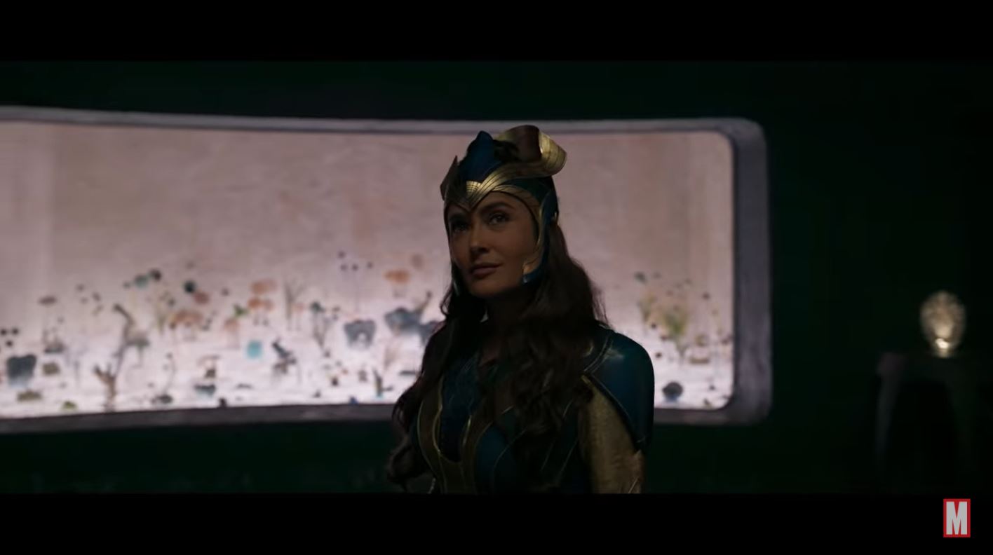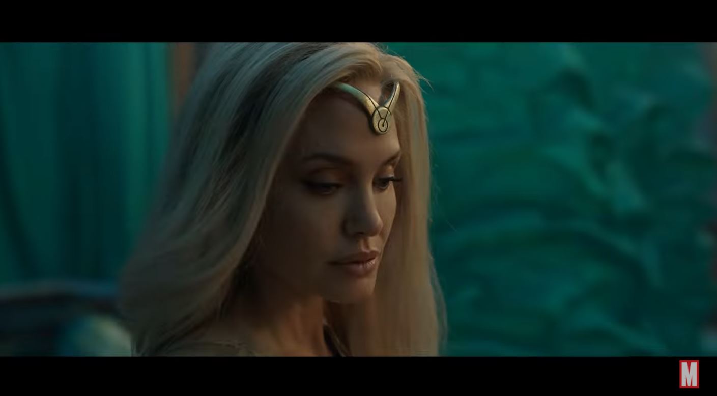 As has long been the case with Marvel teasers and trailers, we are given no f-cking context for what is happening, which in the case of the Eternals, feels a little left of the mark, since they’re one of Marvel’s weirder groups. Guardians of the Galaxy was an easier sell, since they could be parsed as “Avengers in space”, but the closest shorthand we have for the Eternals is “like gods, but not”. We definitely get a sense of their Ancient Aliens history with humanity—yes, the in the world of the MCU, the Ancient Aliens guys are right, UGH—as they arrive and begin helping those hardscrabble cliff people build civilization. We get a little glimpse of some of the Eternals in action, including speedster Makkari (Lauren Ridloff), inventor Phastos (Bryan Tyree Henry), warrior Thena (Angelina Jolie), their leader Ajak (Salma Hayek), and Sersi (Gemma Chan) helping to grow plants. We also get a quick cut of eternally young Sprite (gender-swapped for the movie and played by Lia McHugh) singing on a jet plane, scowling Druig (Barry Keoghan), and Kingo (Kumail Nanjiani) dancing in a Bollywood movie. GIVE ME ALL OF THAT, PLEASE.
