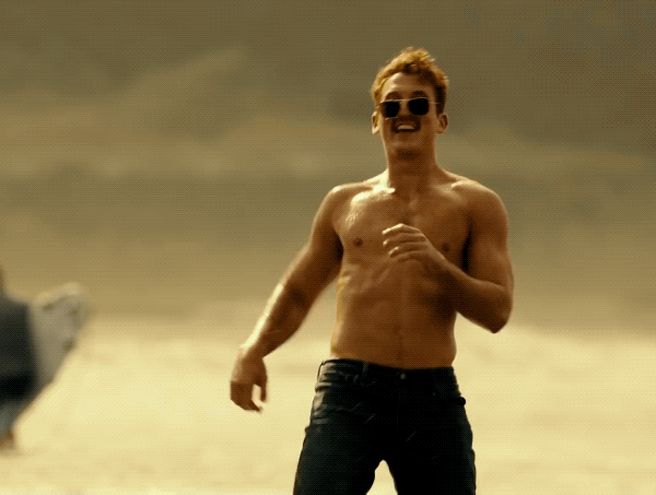 Now back to the beach… so there was flight training but there was also beach training. As in, they took it very, very, very seriously the fact that they would be calling back to the now iconic Top Gun beach volleyball scene and made sure their bodies were ready for it. Cut and pumped and chiselled. And oiled.