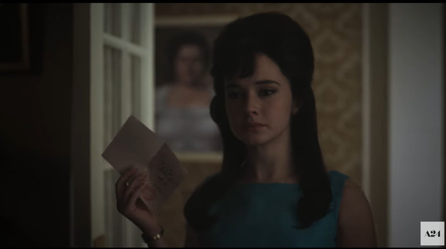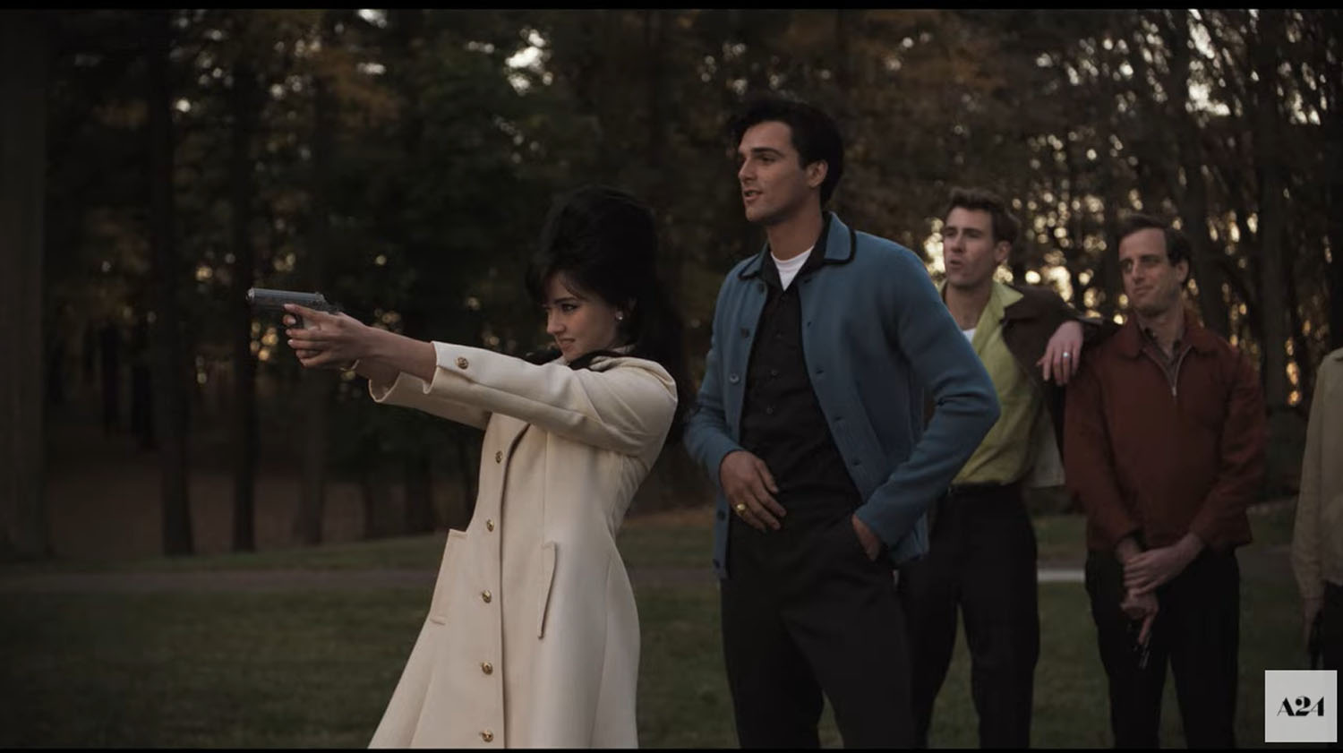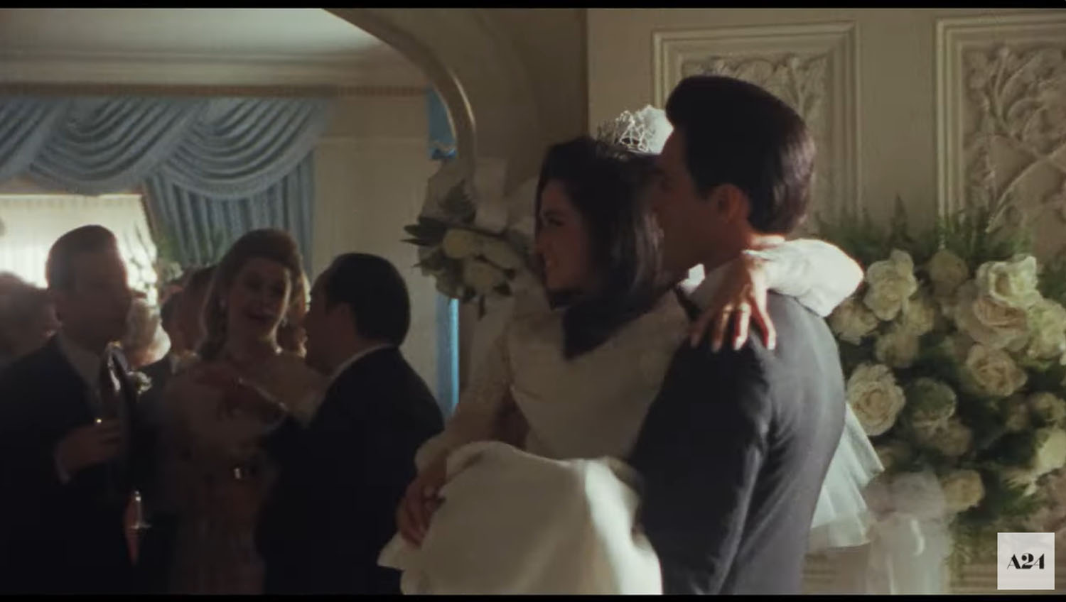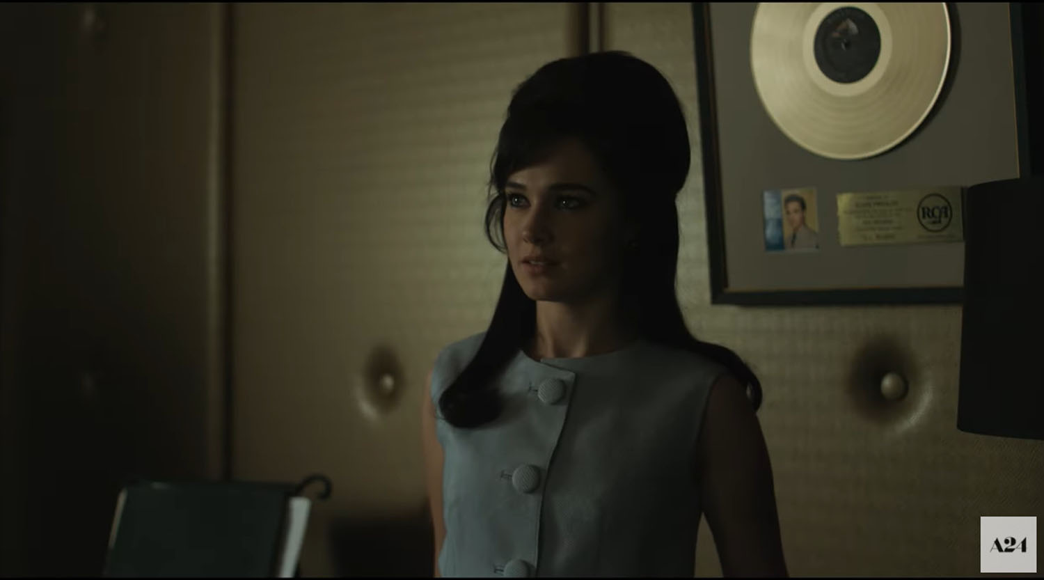 The new trailer puts heavy emphasis on Priscilla’s youth, her fresh face, her saddle shoes, her bobbysoxer style—Elvis even asks her what the “kids are listening to”, because she, a fellow kid, would know. There’s Priscilla in a classroom, Priscilla’s dad asking what Elvis wants with his teenaged daughter, Priscilla looking flattered and awed and overwhelmed by Elvis.