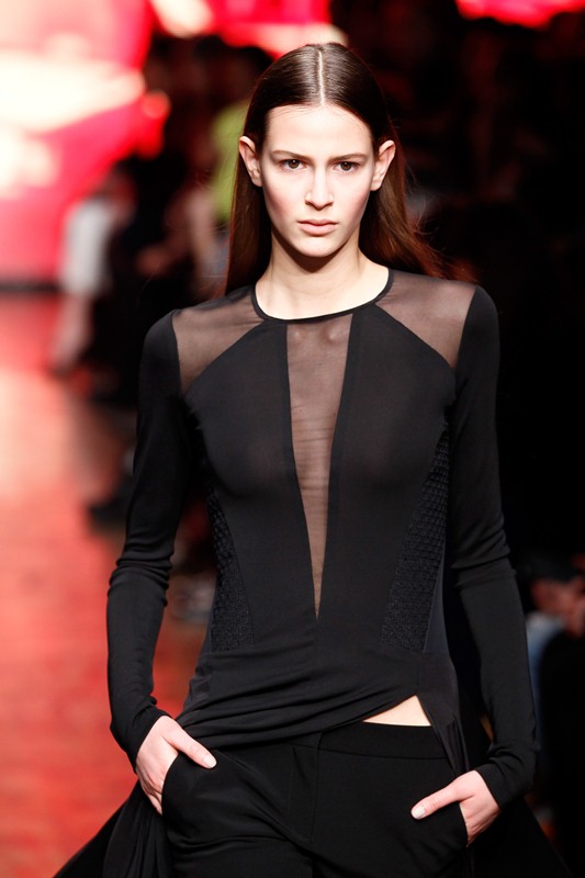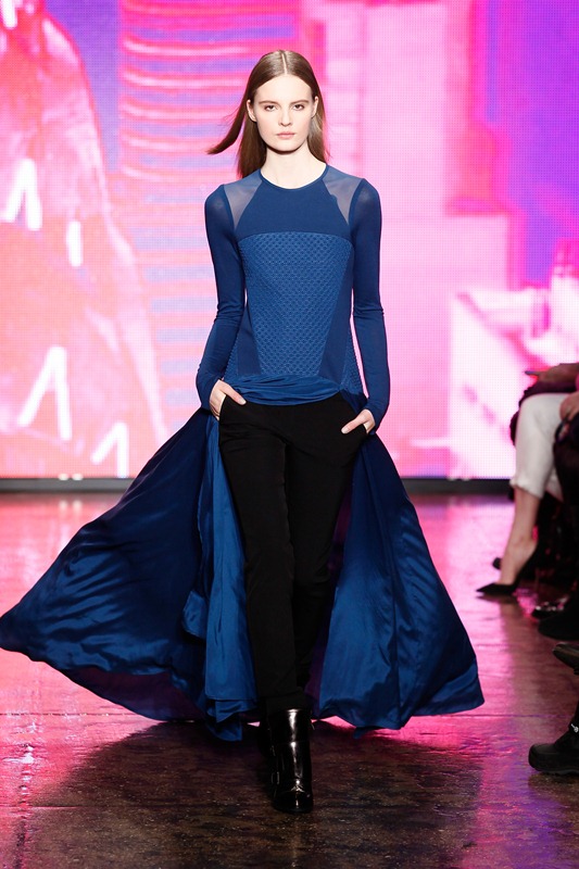 Having said that, there’s not much excitement happening here, and I wonder if Donna Karan is to New York what Giorgio Armani is to Paris. The piece of clothing I like most might actually be the big coat she’s wearing down the runway.