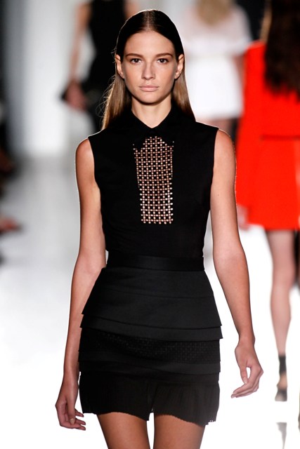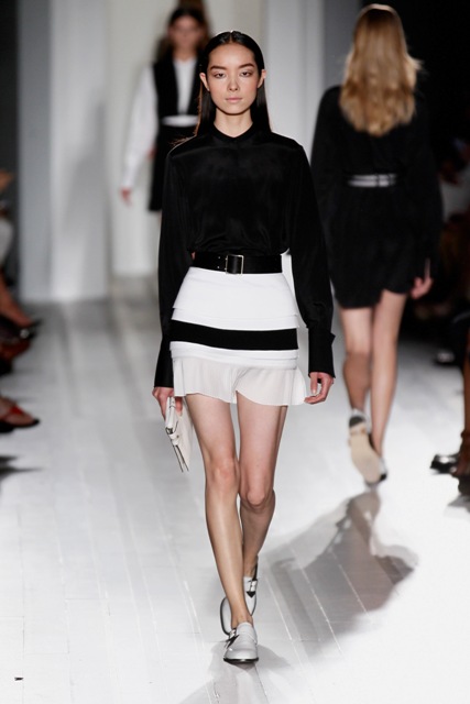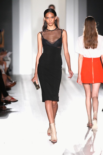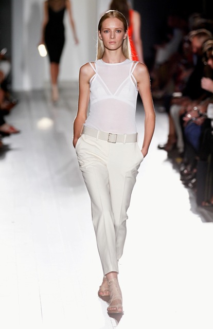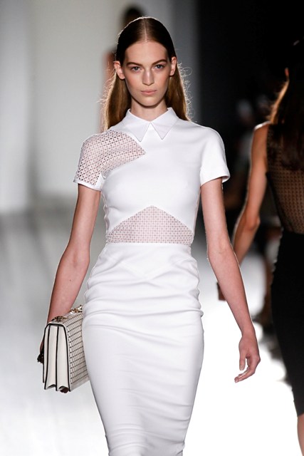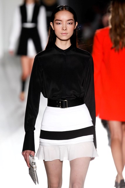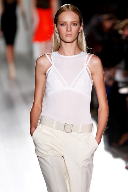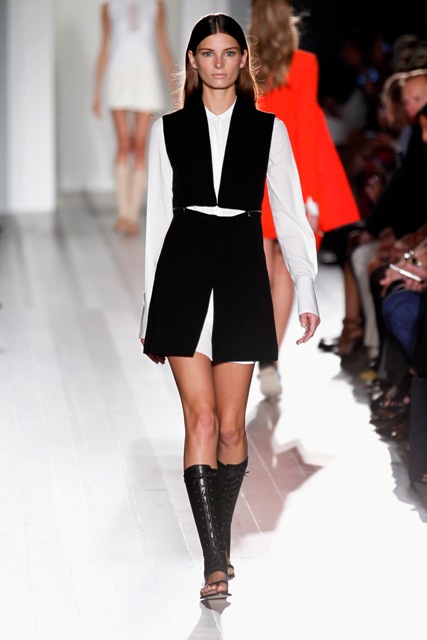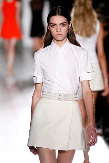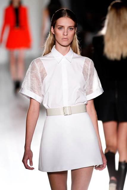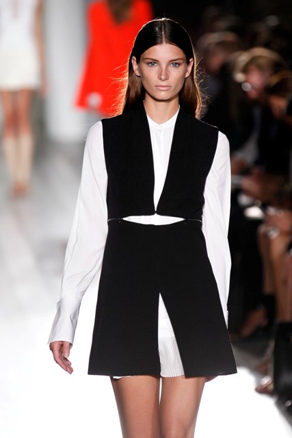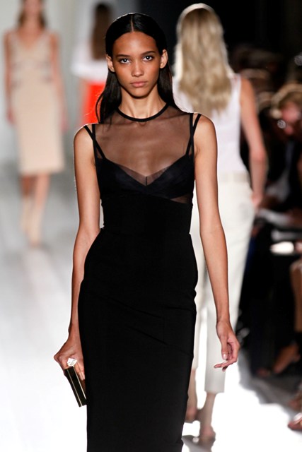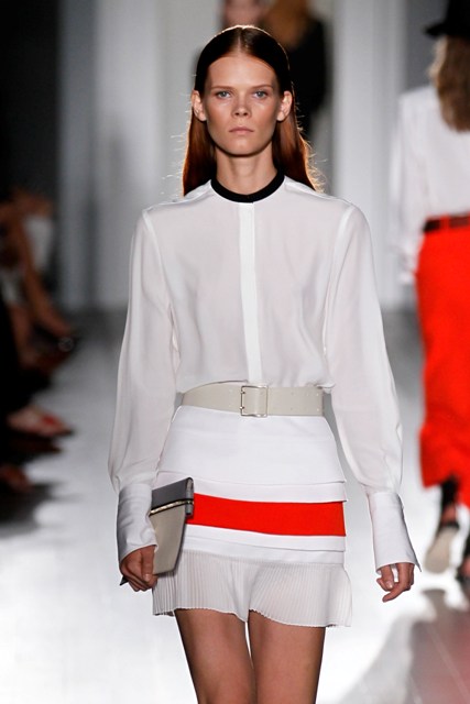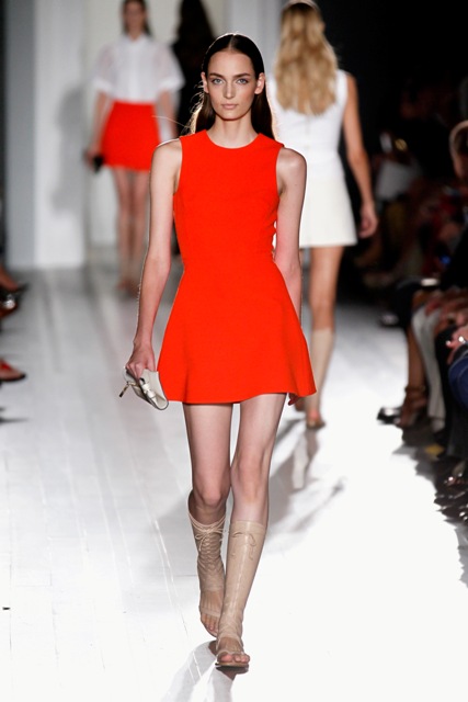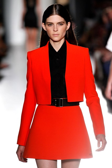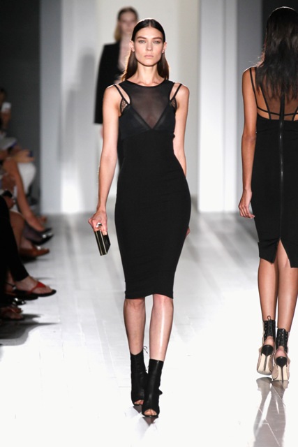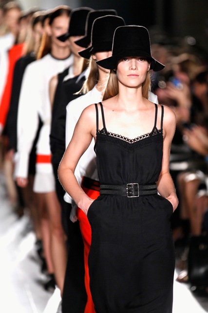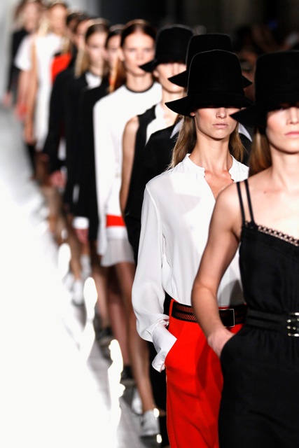Models display outfits by designer Victoria Beckham during the Spring/Summer 2013 for New York fashion week.
