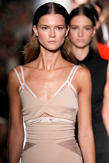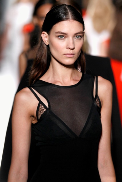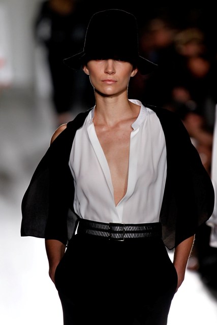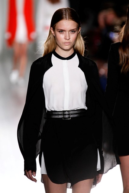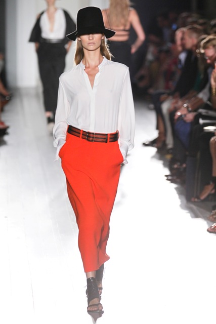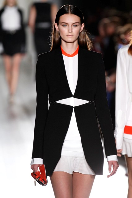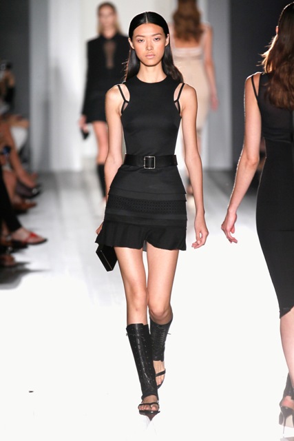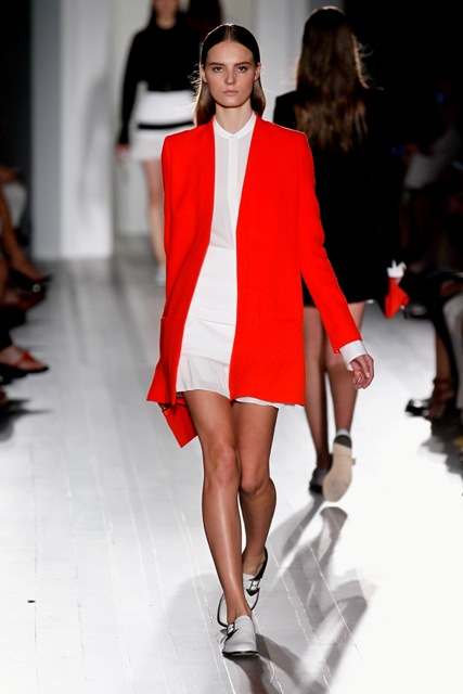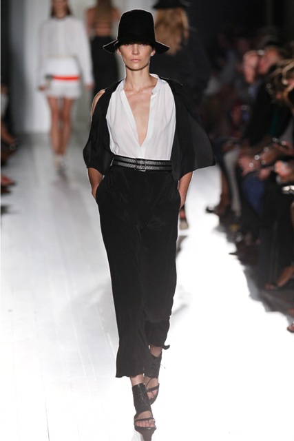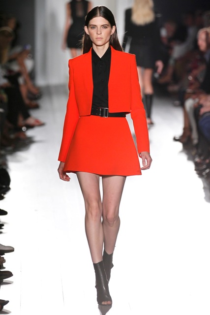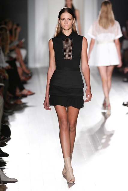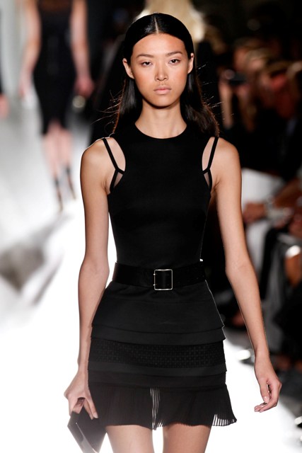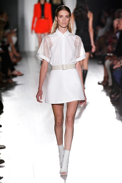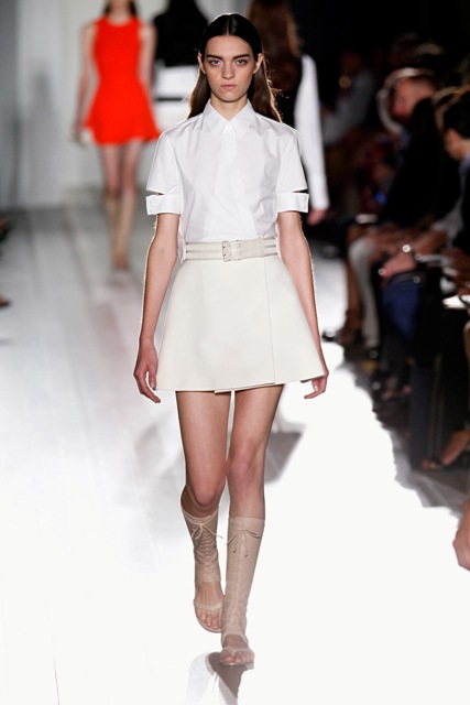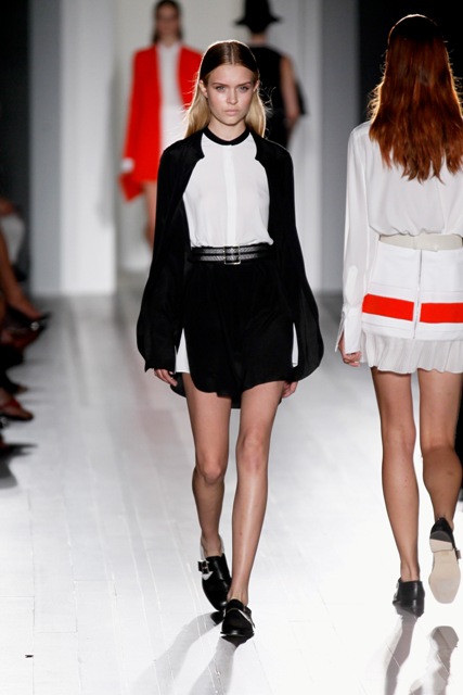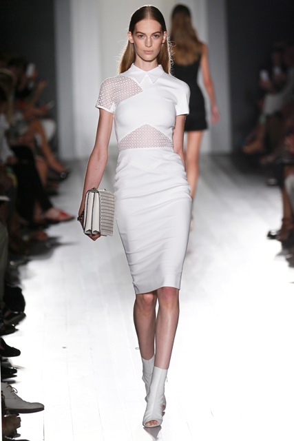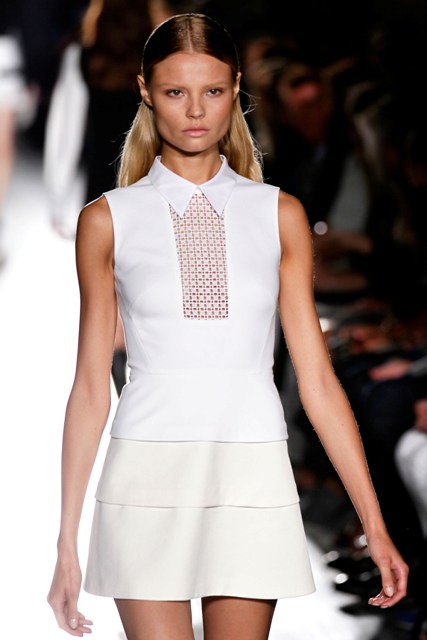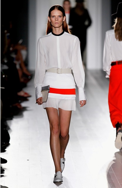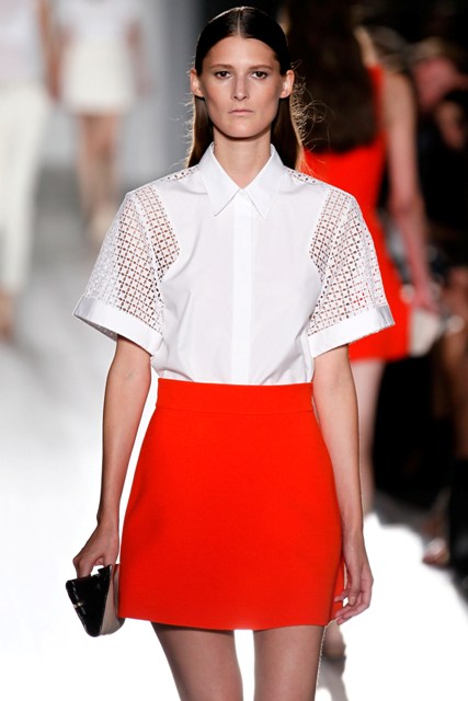 Models display outfits by designer Victoria Beckham during the Spring/Summer 2013 for New York fashion week.