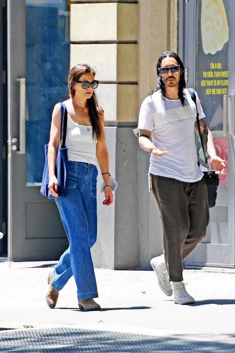 Katie Holmes is single now, having broken up with Emilio Vitolo Jr after less than a year of dating, so anyone she walks around town with is going to be a romantic question mark, especially for the paps. Here she is in New York the other day out with what they’re calling a “mystery man” which is a regular gossip expression when we see a famous person with a non-famous person, “mystery woman”, “mystery man”, and it creates intrigue, sometimes unnecessarily. Like if we sub out “mystery man” with “friend”, the interest level changes, right?