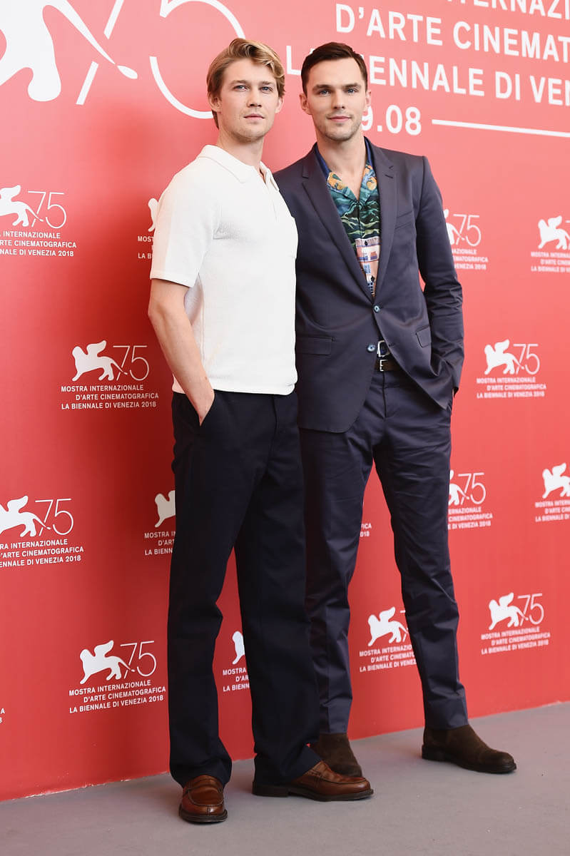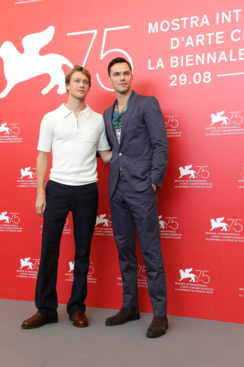 Nicholas Hoult and Joe Alwyn are supporting actors in The Favourite, starring Olivia Colman, Emma Stone, and Rachel Weisz, world premiering at the Venice Film Festival. Here they are at the photo call today, looking very tall and very handsome. As you know Joe is dating Taylor Swift. Nick used to date Jennifer Lawrence (he is now with model Bryana Holly and they just had a child). Imagine the power double date though if they were still together?