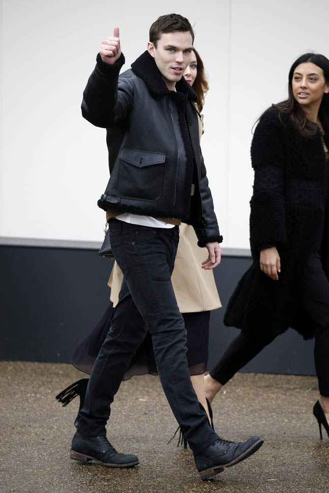 Burberry show at London Fashion Week. Nicholas Hoult in a leather jacket. That’s a good present, right? God he is SO cute.