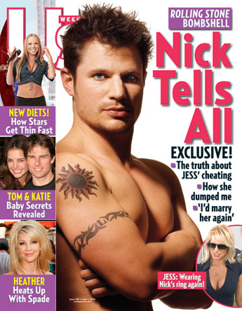 Memo to Tom. Son, you NEED to hire Nick"s publicist. Because never was a PR strategy so brilliantly conceived. So while my sources still maintain that Nick was the one who wanted out of the marriage for obvious reasons (his ex wife is a giant hole), reinventing himself as the man who adored his bride, who continues to adore her still, is absolute grade A spin at its finest. Oh - and by the way - he has a new album coming out. But you knew that already didn"t you? Here"s a tasty excerpt - Nick"s words of course - from the much talked about interview with Us Weekly/Rolling Stone: "It breaks my heart that I couldn"t make Jessica happy. I wanted to be everything to my wife. I wanted her to look at me with love in her eyes, the way she did at the beginning, and have her feel like I was the most wonderful, awe-inspiring man on the planet. And when that stopped, it was the worst feeling in the world. I"d marry her all over again. Because I still love her. It would be a lot easier to walk away if I didn"t." Basically what every woman wants to hear…right? Well, then he goes for even more gold. Turns out - Nick ain"t greedy! "There was a prenup drawn up by my business manager. There was some question as to her spending habits. It was a way to protect me. She said she didn"t want to sign it, and that was the end of it. We"ve always been a what"s-mine-is-hers situation. I haven"t requested alimony at all. I have no intention of filing for spousal support. And I"ve been clear with Jessica about not wanting it." And it just keeps on going. Next up: Nick has class! With a few tasteful and gracious comments even for Papa Joe thrown in for good measure: "I don"t know if there were other men. But if she did cheat, it was the result of something bigger, not the reason we didn"t work out. (If I) found her in bed with a guy, that would be clear cut. End of story. I wouldn"t have to deal with the uncertainty of adultery. (Regarding Joe) It would be easy for me to blame my divorce on him. That would be convenient. But at the end of the day, Jessica is a grown woman and she made her own decision." Now y"all know I"m a cynical bitch but even I swooned a little, although I am choosing to overlook the part where he breaks down in tears. Granted, I"m not the kind of girl who gets all sniffly at the sight of babies and kittens, but COME ON. Crying for a journalist from Rolling Stone??? Sorry gossips, but that"s just a little too Jennifer Aniston for my taste. Still... overall... I think it was a fantastic performance - the kind of performance that guarantees at least 2 years of nonstop celebrity AND civilian p*ssy and, quite possibly, some actual hope for his CD. And THAT, my friends, is why you call Ken Sunshine.