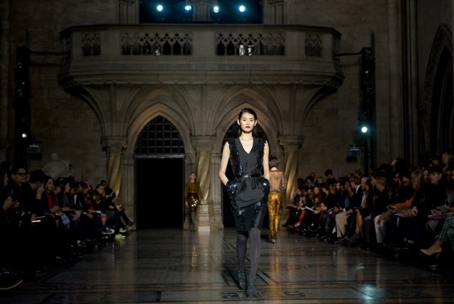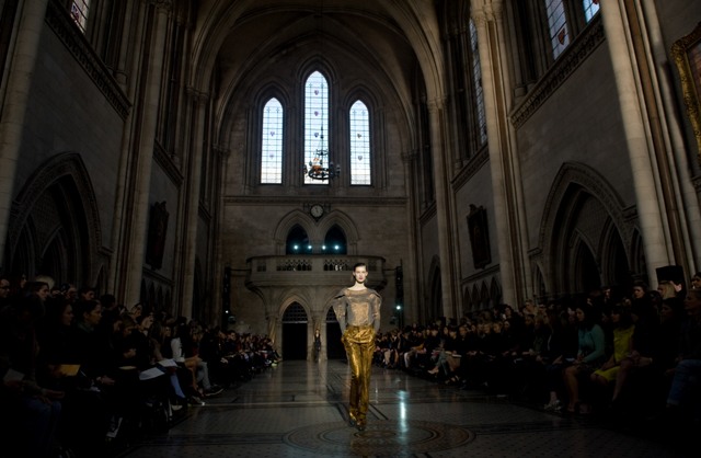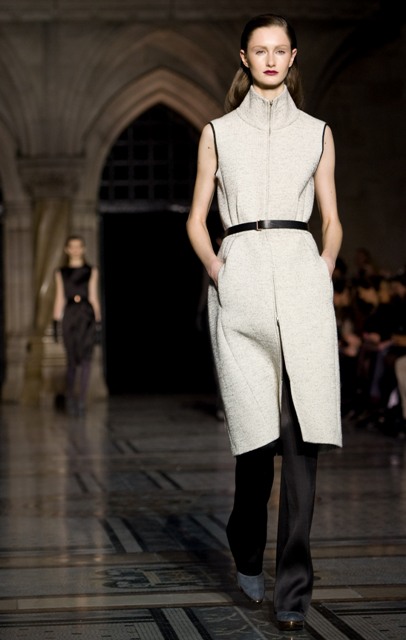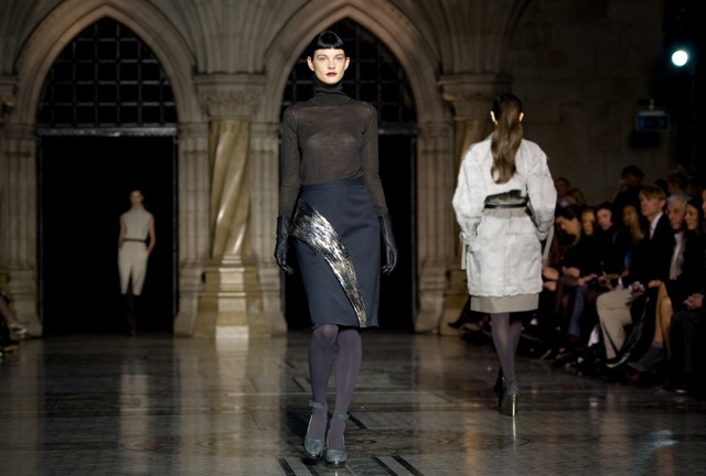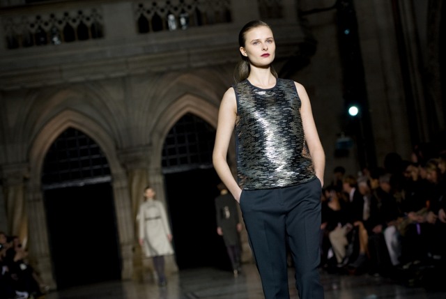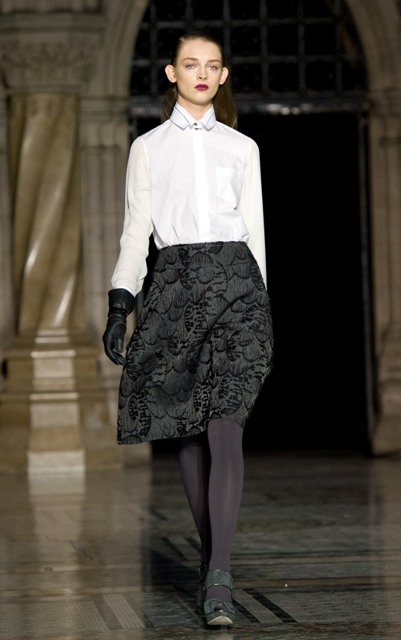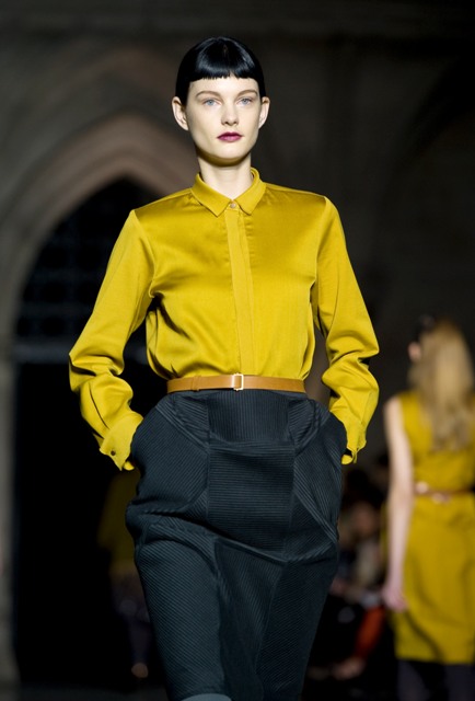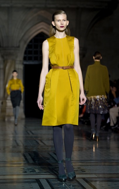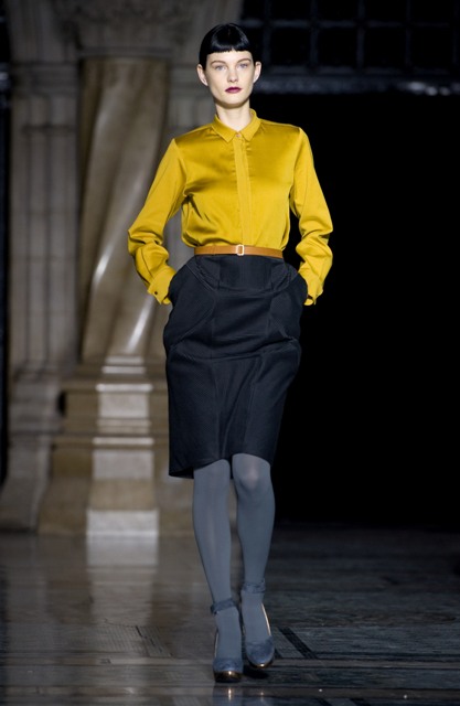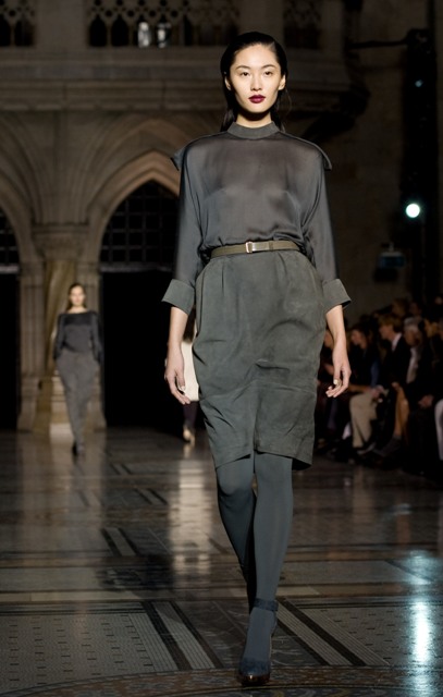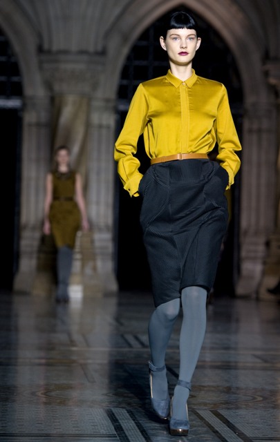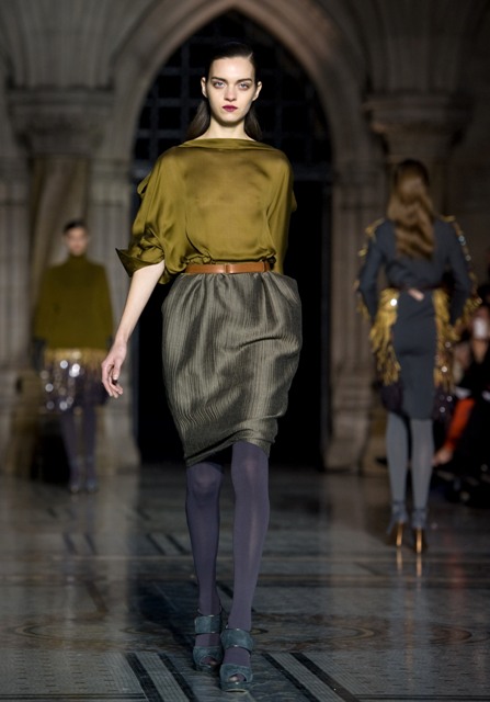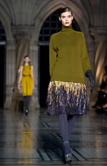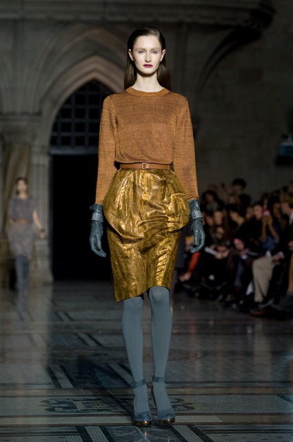It always makes me happy that Bill Nighy is a front row regular at Nicole Farhi, right beside Anna Wintour. I really love the gold metallic trim on the sole of those wedges.