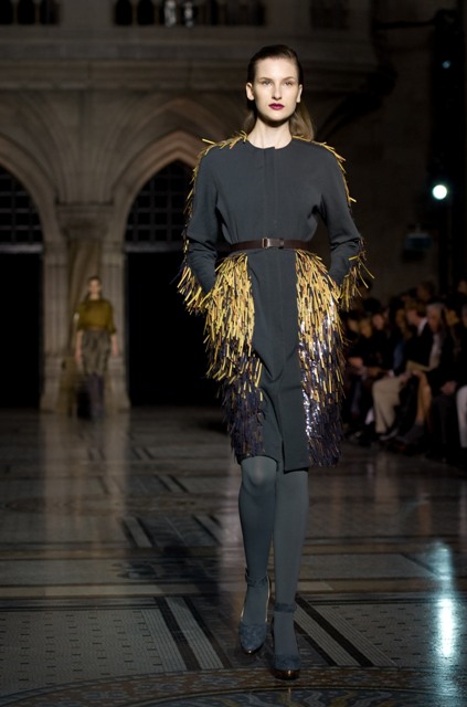 It always makes me happy that Bill Nighy is a front row regular at Nicole Farhi, right beside Anna Wintour. I really love the gold metallic trim on the sole of those wedges.