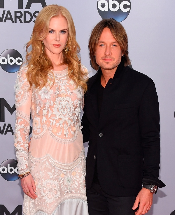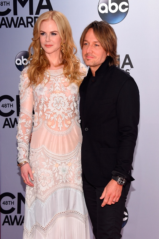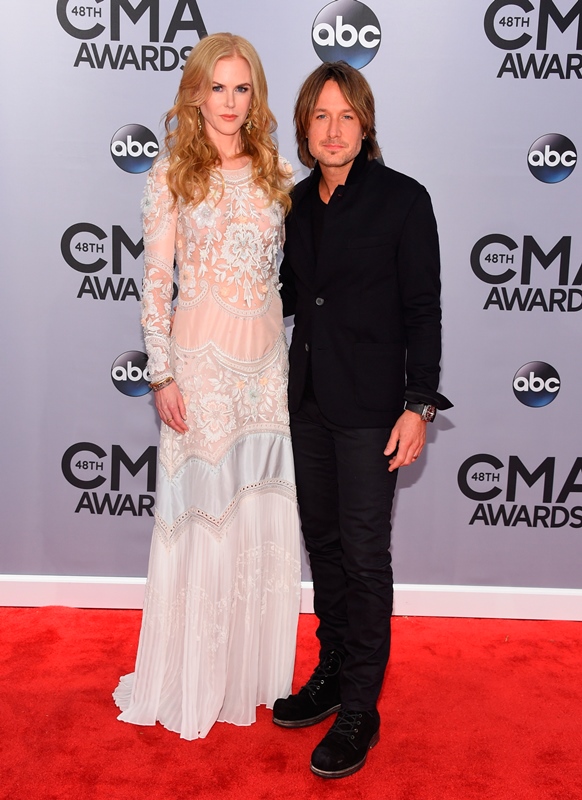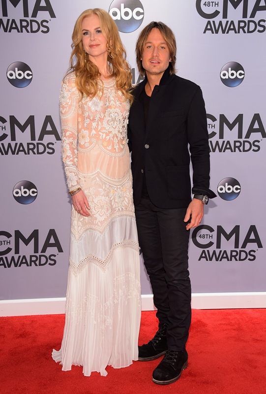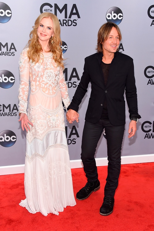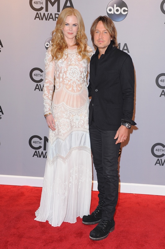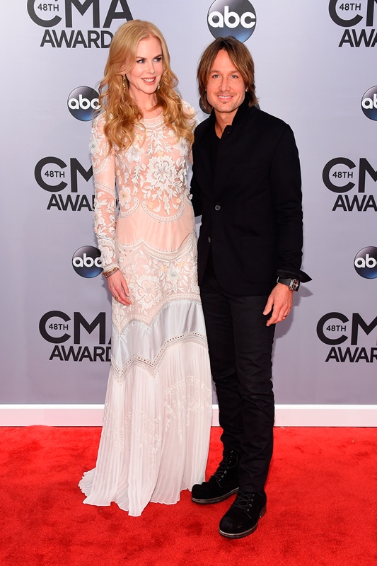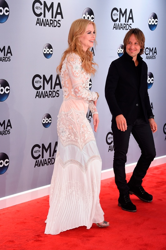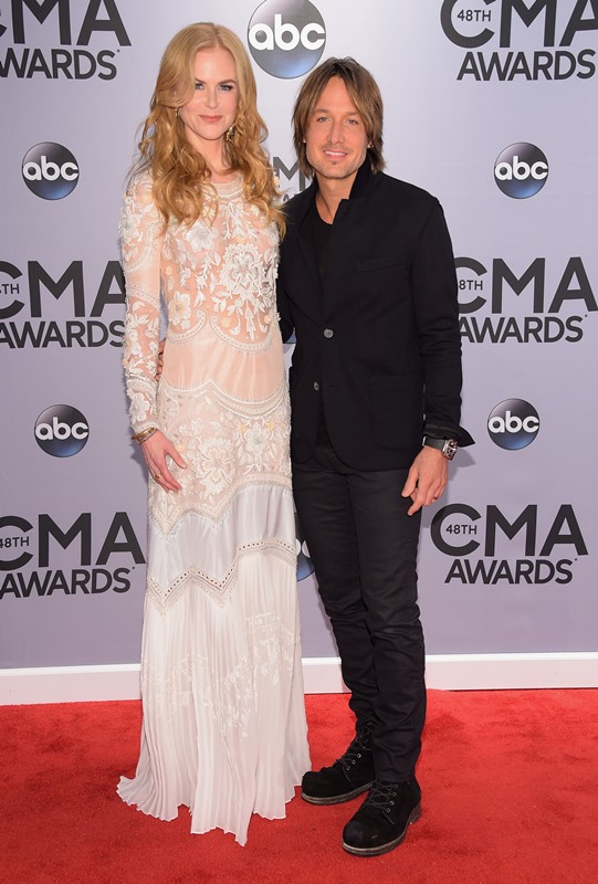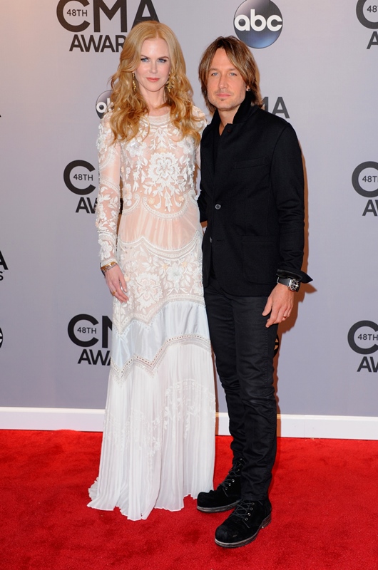 Here's Nicole at the CMAs with Keith Urban last night. She wore a boho Cavalli. Cavalli? Yeah. Cavalli. My question is do you think she would wear Cavalli to the Golden Globes or the Oscars? Look. It's country. The music, great. The fashion? Come on now. When Carrie Underwood is trotting out one prom dress after the other, it would almost be insulting to a Givenchy to have to be seen near it.