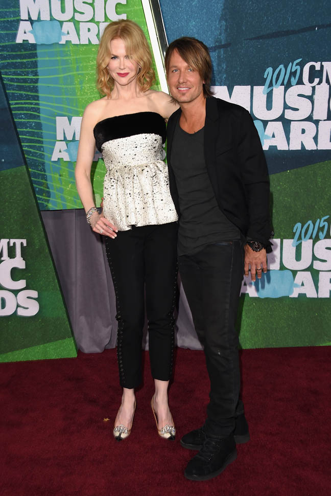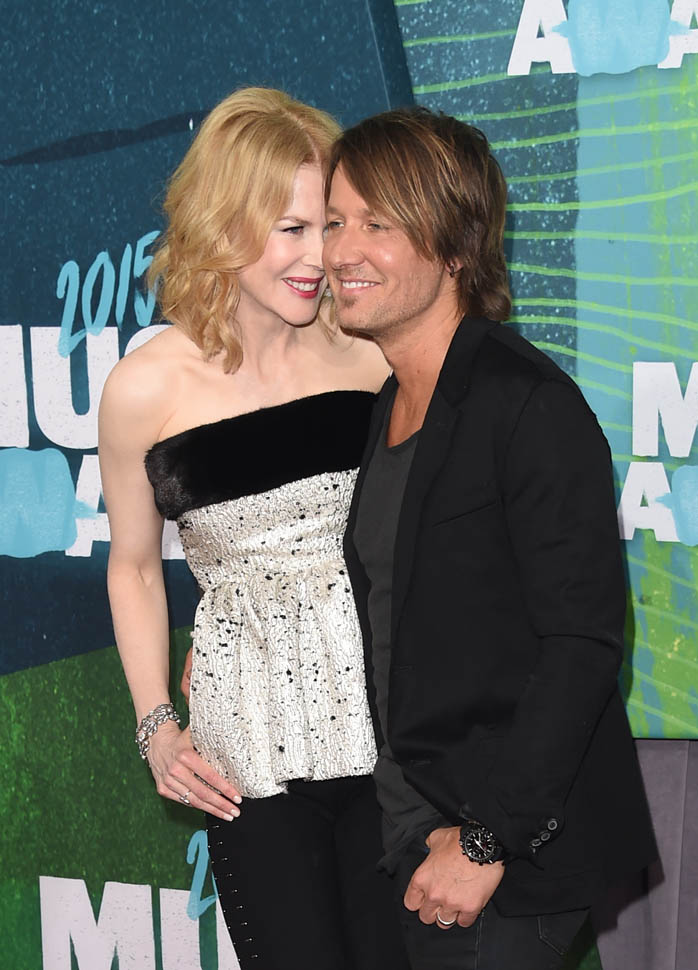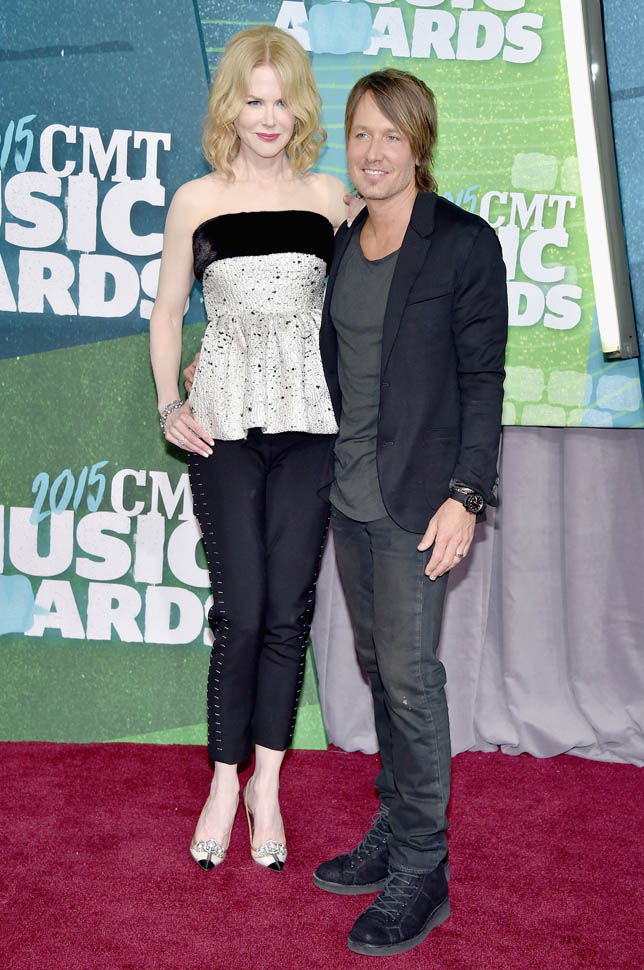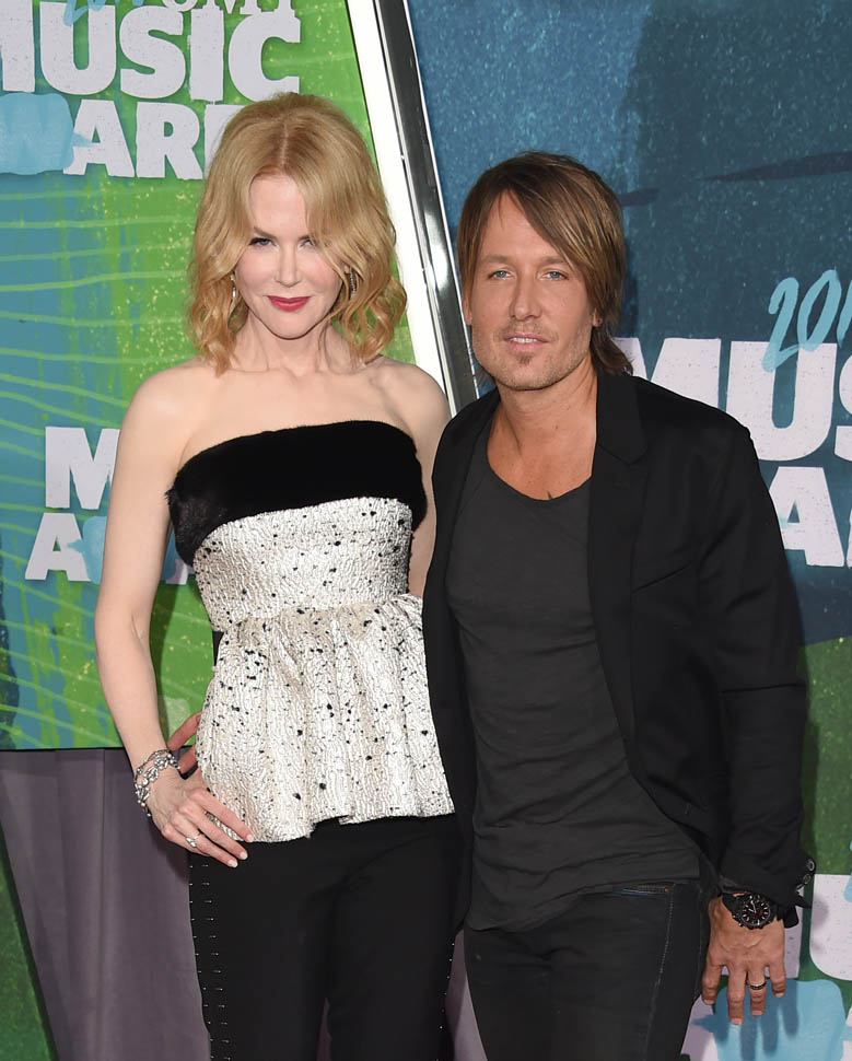 The CMT Music Awards happened last night in Nashville. Keith Urban was there with Nicole Kidman and they were all kinds of lovingness throughout the event. These two are coming up on their 10 year wedding anniversary next year. Right now they’re just under the amount of time she and Tom Cruise were married but we’re almost there. You remember how the 10 year milestone was such a contentious point of gossip in their divorce? Like how he supposedly filed before the date to save money? Holy sh-t. That was so long ago. Almost 15 years ago.