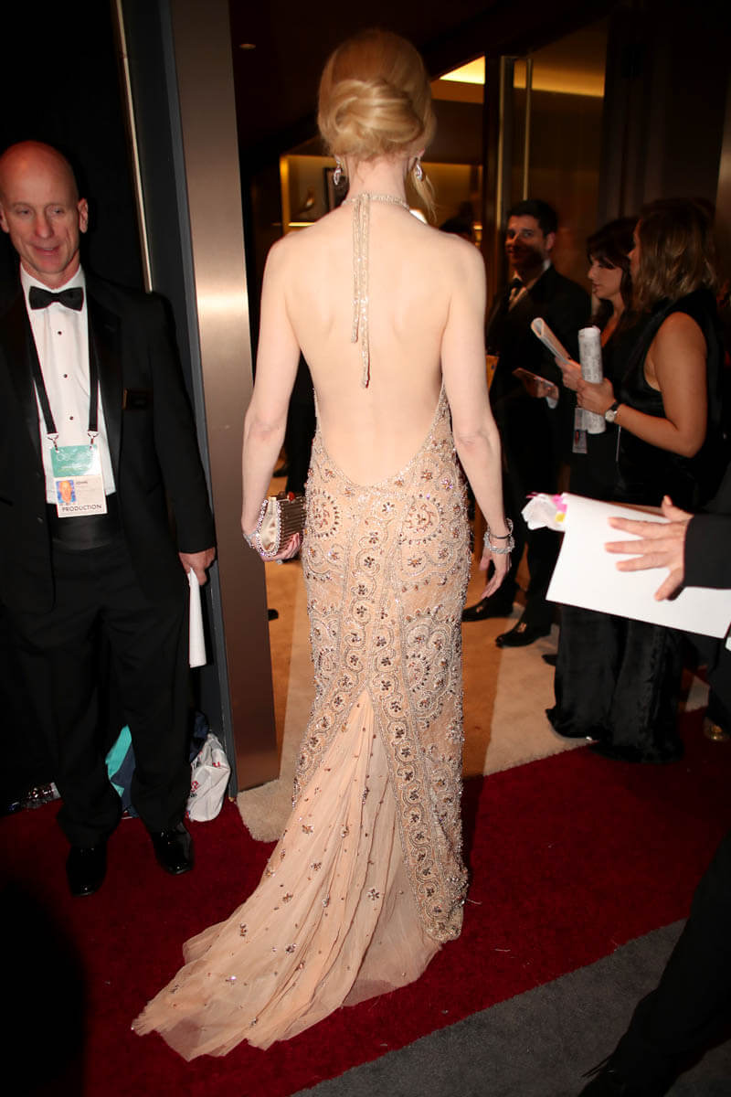 Also weak – her dress. After the double parrots, I was hoping for a lot more from Nicole. She herself said that she wants to be polarising in fashion and this…is the opposite of polarising. This is so not polarising it’s almost placating. And forgettable. And if it’s the straps across the back that you’re into, Charlize Theron did it better: