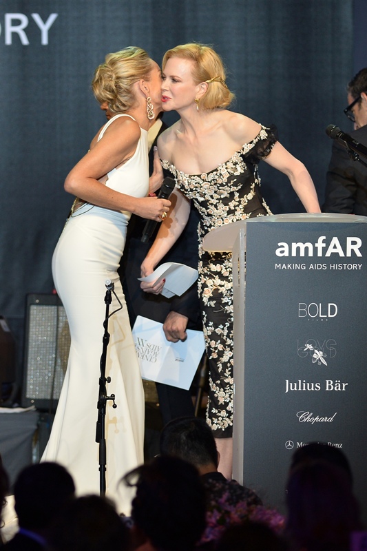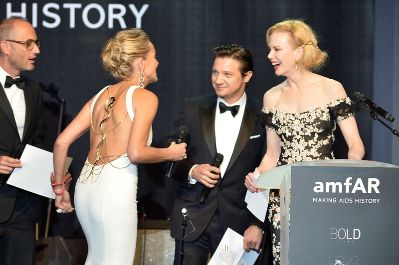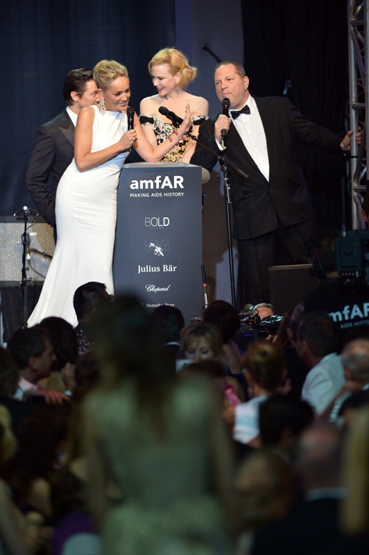 She’s a big deal in Cannes, every year, and she works hard for amfAR, and she was working it hard last night at the annual gala raising money for AIDS research in a white gown that was made for retired strippers. Check out the back of it. That’s the kind of dress back that was designed to go with a tramp stamp, right?