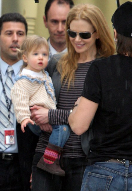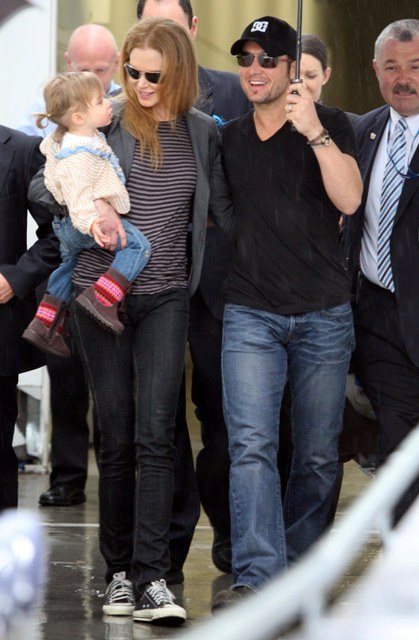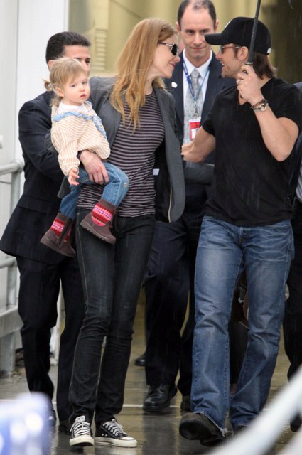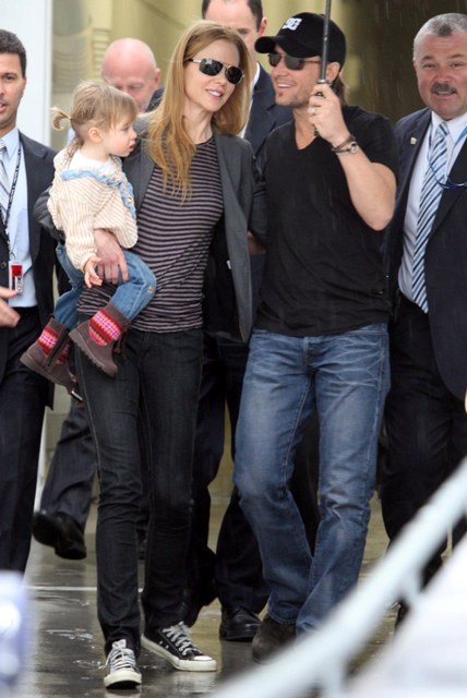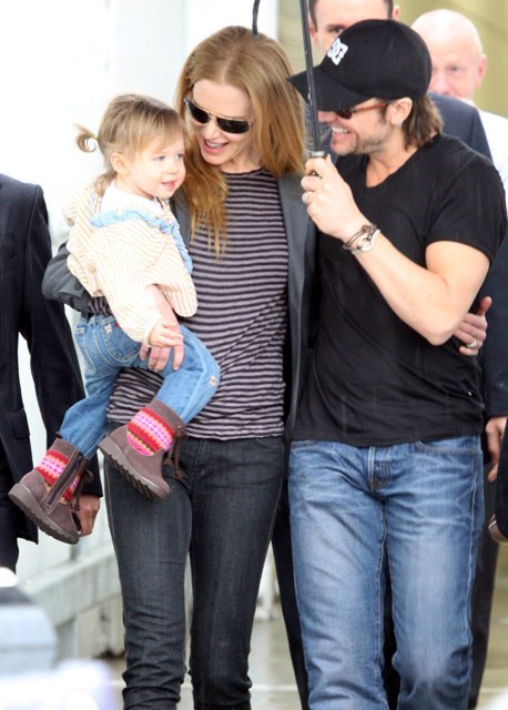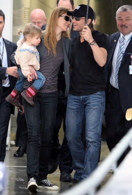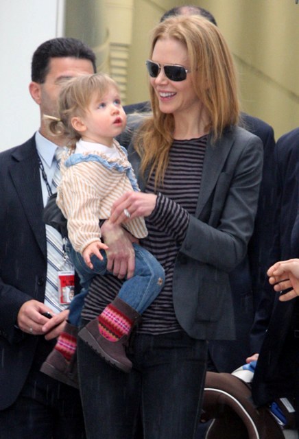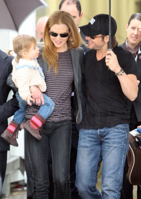 Granny Freeze Nicole Kidman has been known to fly into Australia via private jet. She has the access and she’s also rather tight with Rupert Murdoch. As such, there are rarely good shots of her arriving when she travels home and few as good as these shots taken as Keith Urban, who’s been in Sydney performing, came to meet her and Sunday Rose at the airport. Like royalty, the self anointed Australian national treasure gifted her subjects with a beautiful family album.