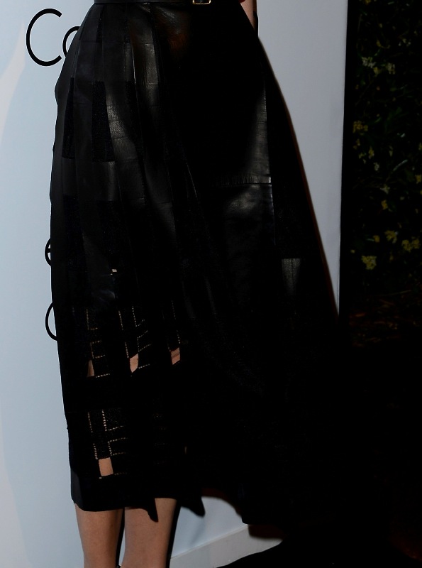 Thank you, Nicole Kidman. After Emma Watson’s rather underwhelming Cannes carpet appearance last night, Thursday at the festival was rather lacking in dress porn. But Gran came through in the evening at the IFP and Calvin Klein party in black leather that looks like it’s stripped along the side. From some angles it looks like pleats. From others it’s like patchwork panels. It’s a great choice for the occasion. And I like that she went with a close-toe shoe to complete the look.