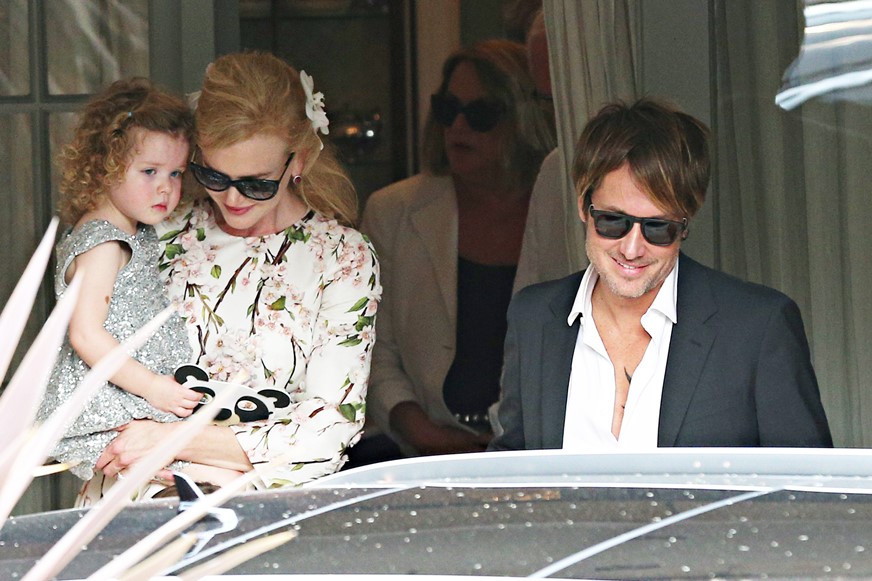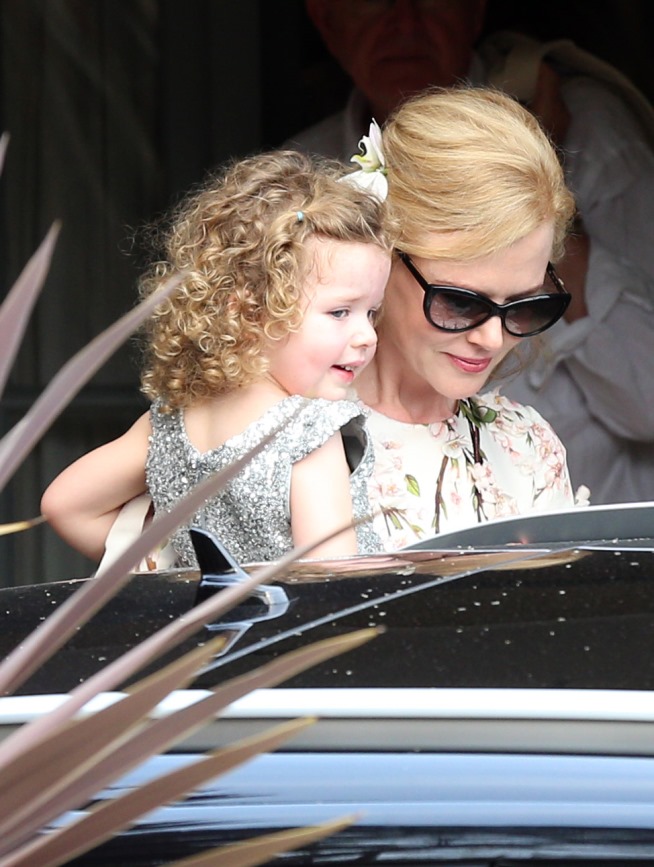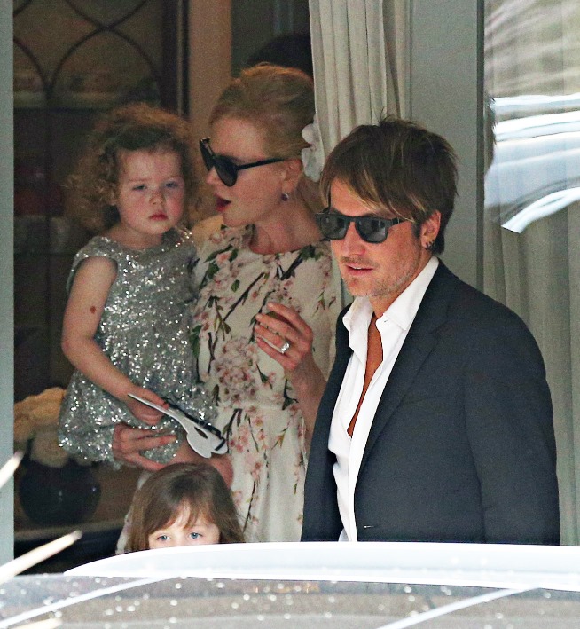 Little Faith Urban looks exactly like her mother, non? The hair, the complexion, she’s adorable. Faith turns 3 this week. Can they walk at 3? I think they can probably walk a short distance at 3, right. But if she was allowed to walk to the car, which was parked right outside the entrance, celebrity-styles, you wouldn’t have seen her because she’d have been blocked by the vehicle – which is why you can only see the top of her sister’s head.