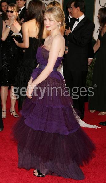 I can tell you’ll rag on me for this but let me explain. Some women are made for super high glamour. Like Nicole Kidman. And Catherine Zeta. And Halle Berry too. Some don’t suit it. They are simply not fashionistas. For this select group of women, it’s better to go quirky. To celebrate their own unique sense of style. Michelle Williams is certainly not conventional. Some of her past mistakes have been downright f*cked up. But when I saw her tonight, in a glorious purple creation, with ample cleavage and ample originality, I cheered. Because although it’s probably not my favourite dress ever, it did work for her. And it didn’t make me want to puke. And at the end of the day, isn’t that all that matters???