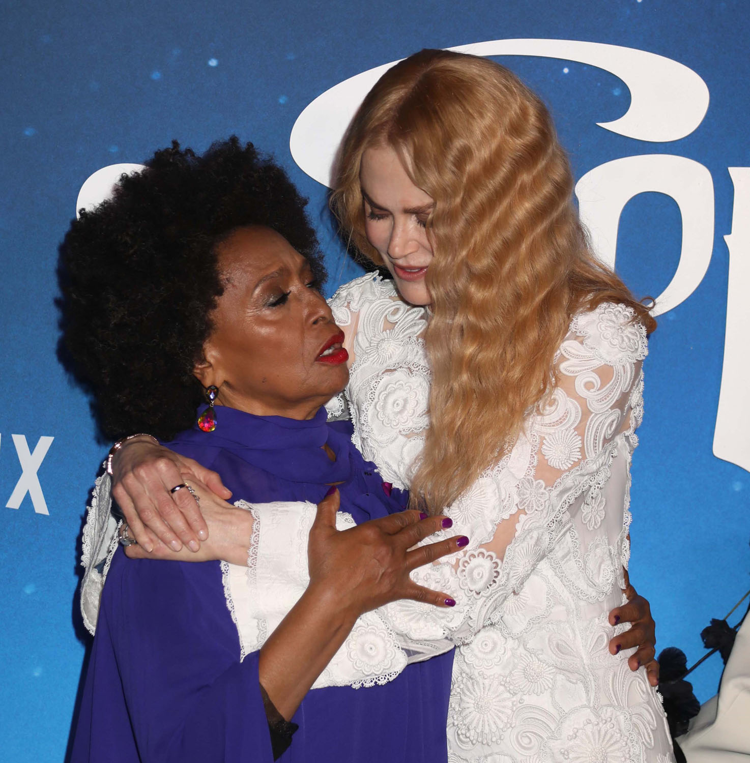Although, surprisingly, this fit is a miss. Not necessarily the dress but the hair and makeup styling for this event isn’t ranking among Nicole’s best looks. There’s something going on with the eye makeup that’s drawing everything too close together. And this hair, for me, is terrible. It’s too tightly crimped. What happens when hair is too tightly crimped is that it makes the top section, where the crimper can’t quite get to, so obviously contrasted in texture. The top looks straight and the crimp starts so suddenly, the effect is amateur hour.