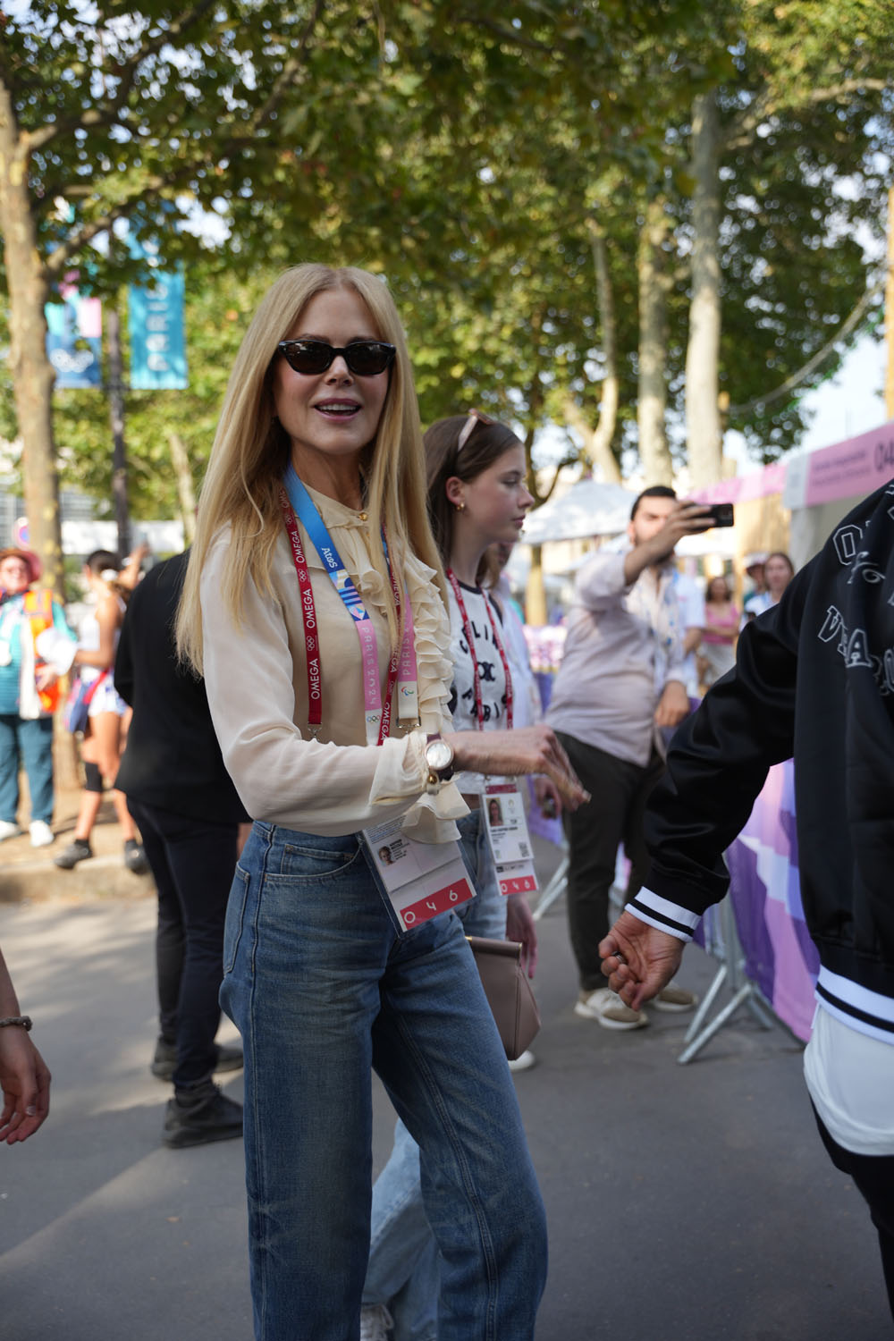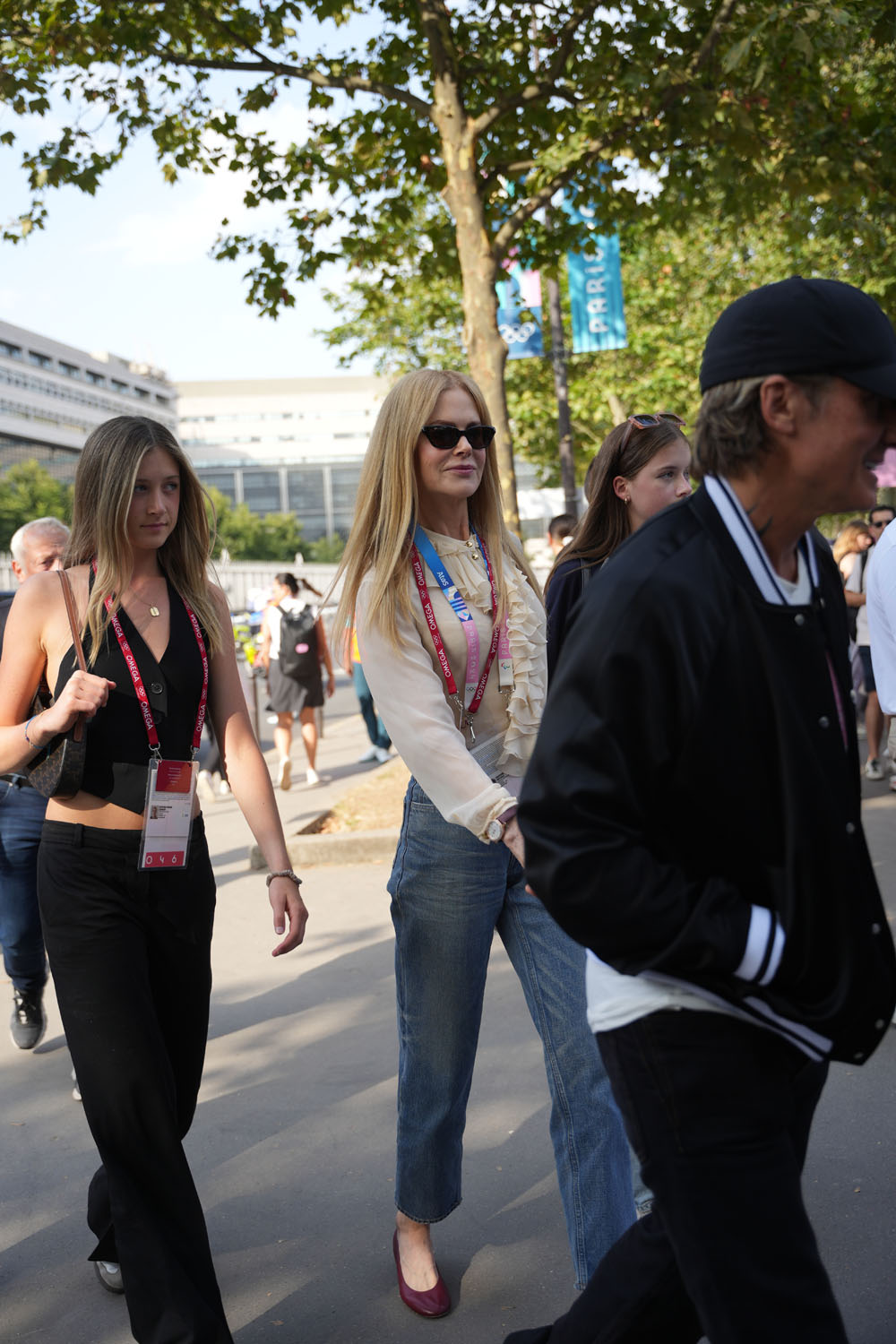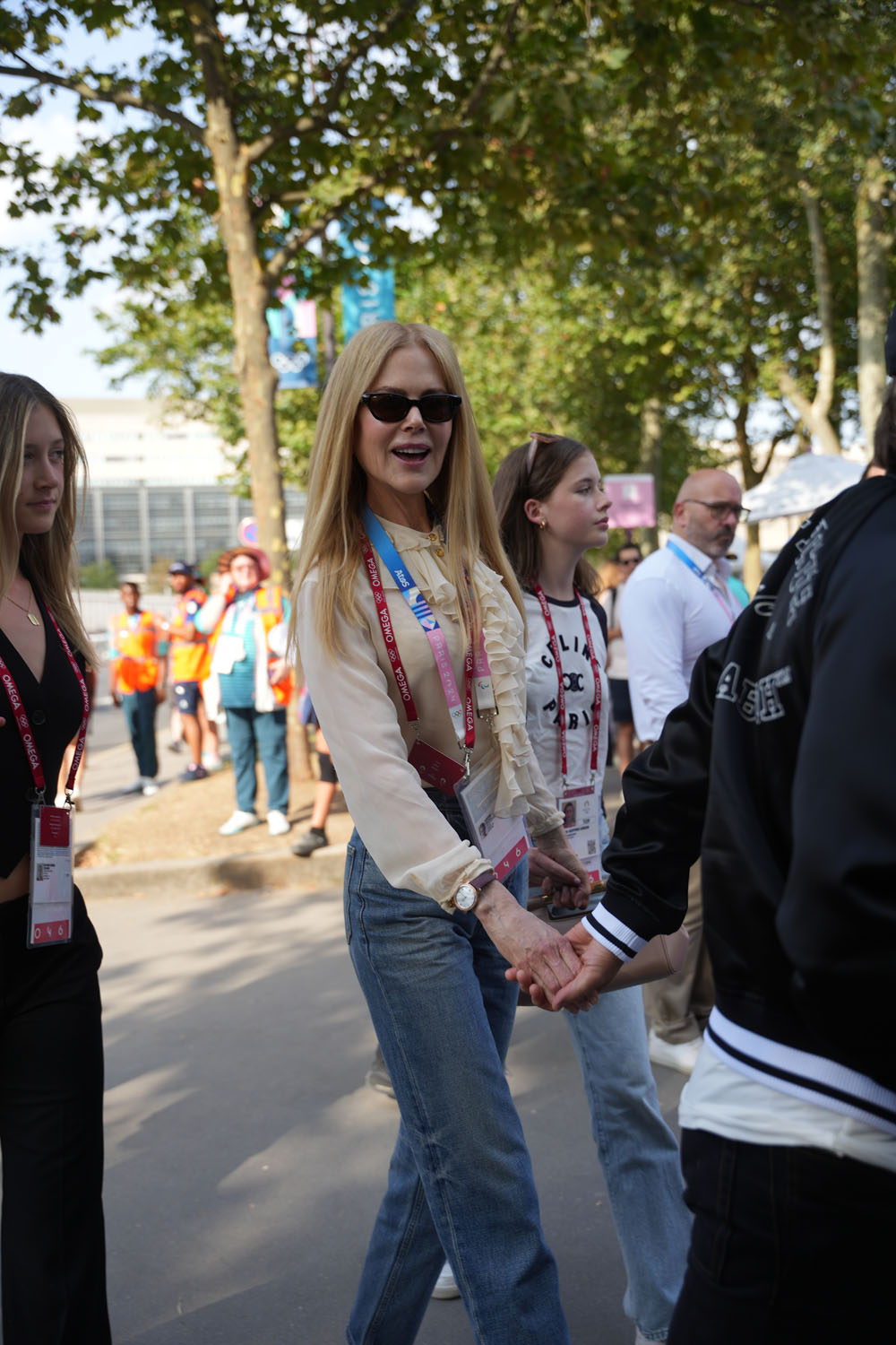Like so many celebrities, including her ex-husband Tom Cruise, Nicole Kidman is in Paris. She, Keith Urban, and their two daughters, Sunday and Faith, were seen at the skate event the other day and today they’re at beach volleyball.