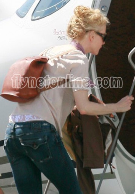 Flynetonline.com grabbed a few shots of Granny’s ass boarding a plane. All the outlets are putting her at 5 months pregnant. Still the debate about whether or not she’s really pregnant rages on.