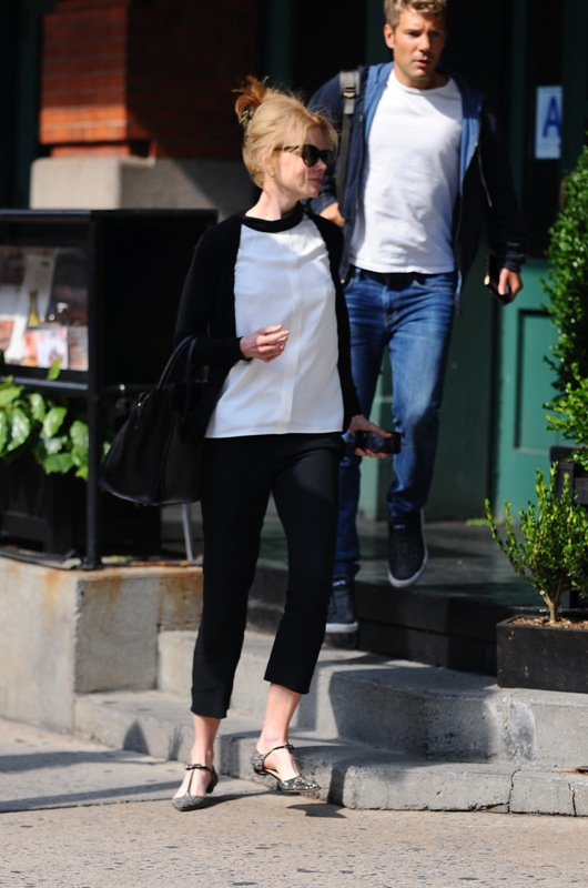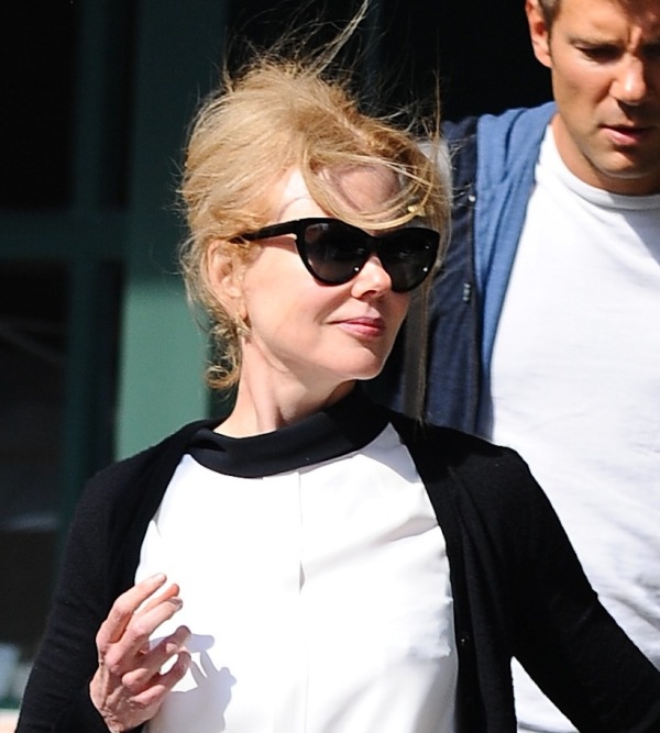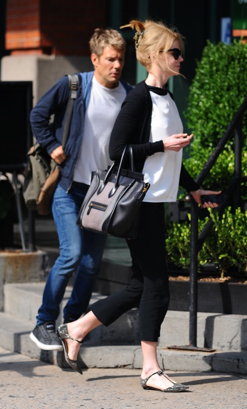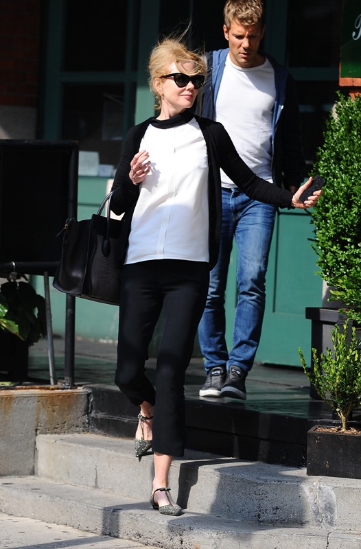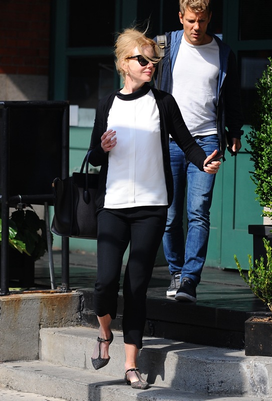 As you know, she is the new Jimmy Choo spokesperson. I wrote about this last week and how much I love the bob on her. The brand has now released a behind-the-scenes video with Kidman explaining her love of shoes, particularly kitten heels. Or, as we say here at LaineyGossip, f-cking kitten heels. And then we fight. Duana wrote a manifesto against the kitten heel last year and it ended up being one of the most-read articles that month. Click here for a refresher. But check out Kidman in New York yesterday, not in kitten heels but flats. See? Super cute. And much better than a kitten heel.