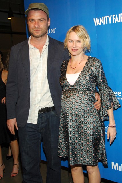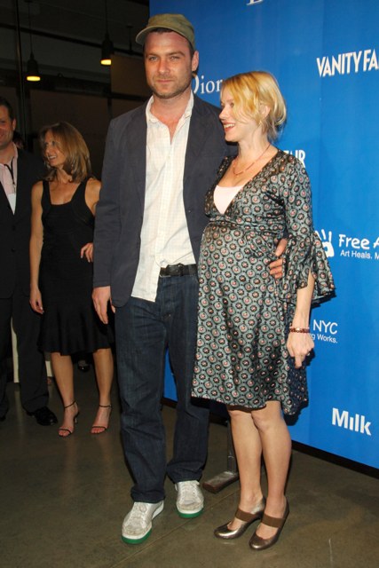 Naomi Watts and Live Schreiber last night at a charity art auction. As you can see, her appearance this night was much less controversial than last time when many of you protested that she didn"t wear a bra at the Tom Ford store opening a couple of weeks ago. Still others argued afterwards that pregnancy is just more comfortable bra-less. And on and on it went.