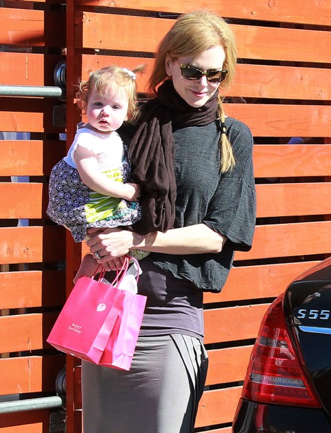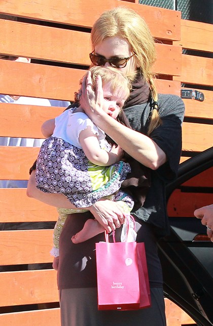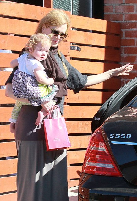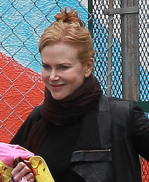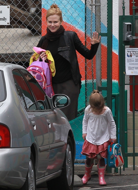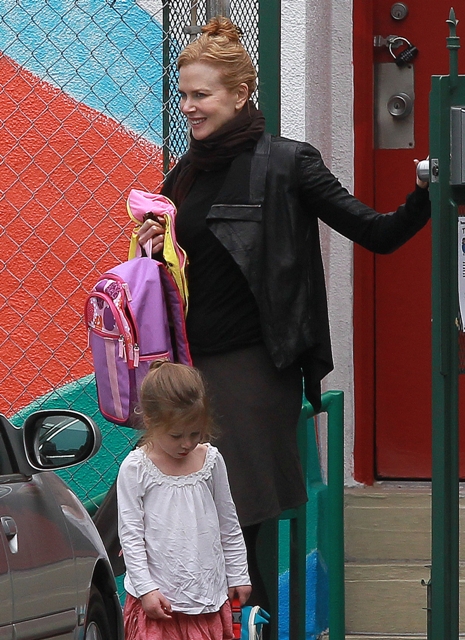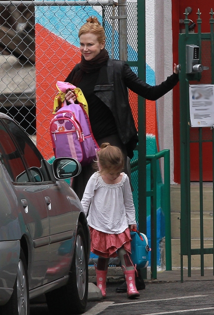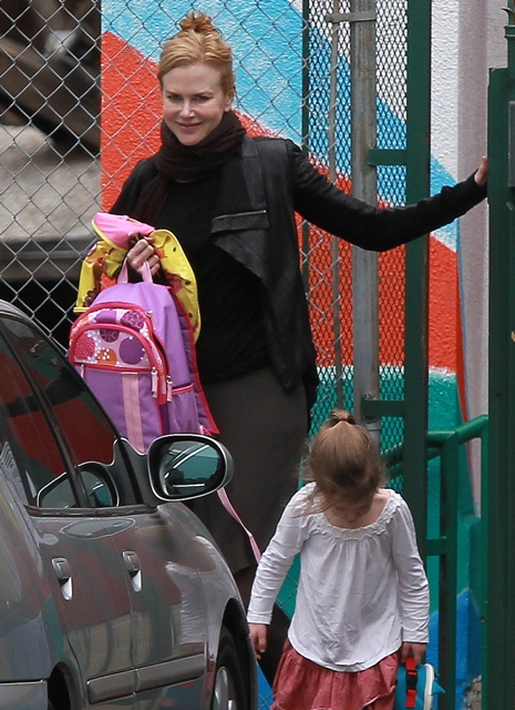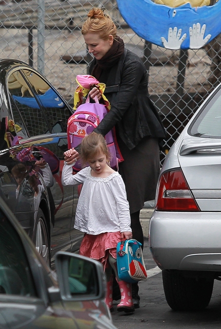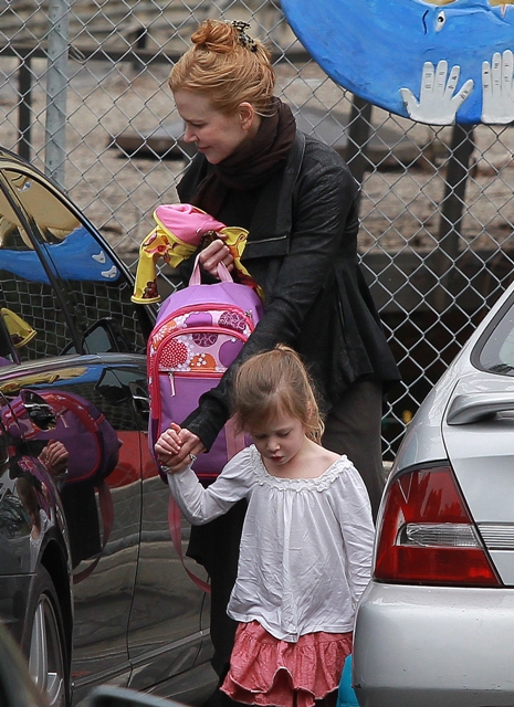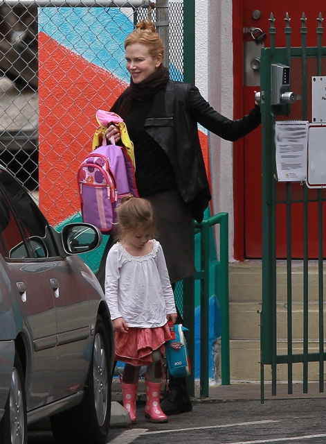 It’s Nicole Kidman picking up her Sunday Rose from school in LA yesterday. Her hair looks wet and it’s held back with a clip, like any ordinary mom!