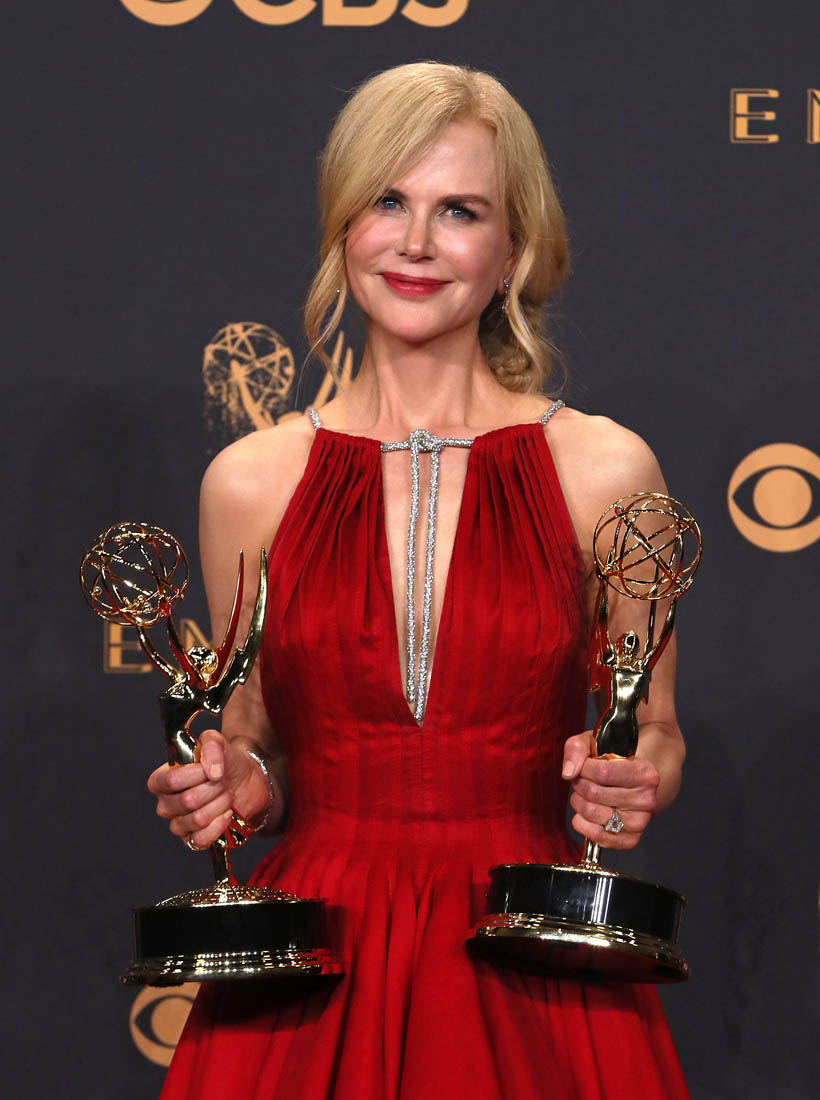 As Kathleen just wrote in her post about Alexander Skarsgard and the on-the-mouth kiss he shared with Nicole Kidman in front of Keith Urban when he was heading up to stage to accept his award, everybody calm down. In North America, we are too f-cking pearl-clutchy about these kisses. If this had happened in Europe, nobody would have noticed. And also, if you’ve seen Big Little Lies and know what those two went through to play those characters, to bring life to that storyline, it only makes sense that they would share a moment last night as a testament to the trust and respect that had to have been there for them to go to a place that was so vulnerable, so raw, and so dark.