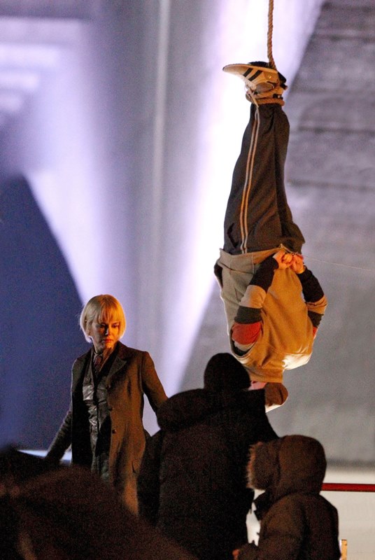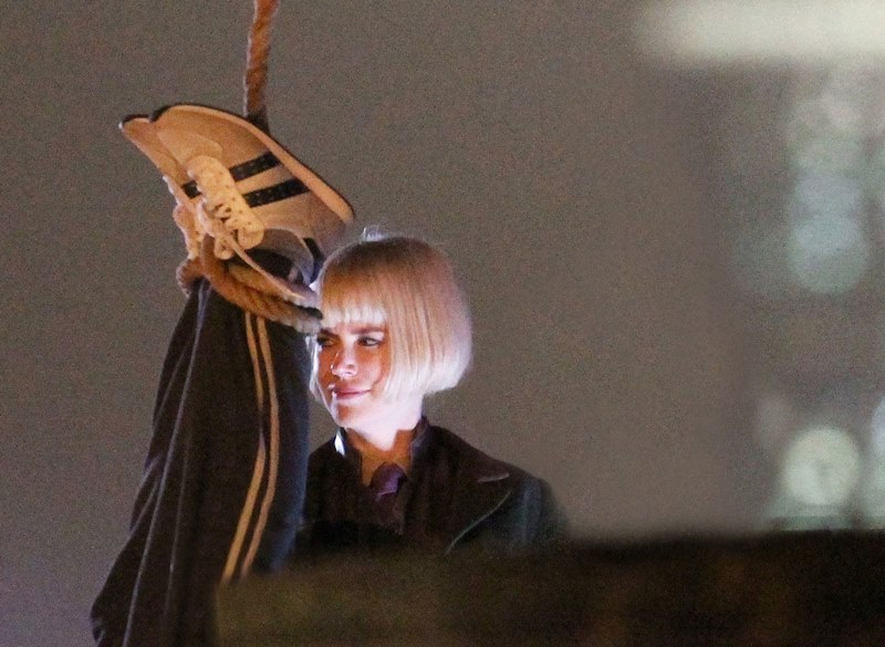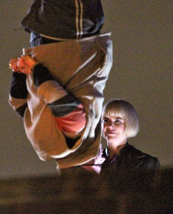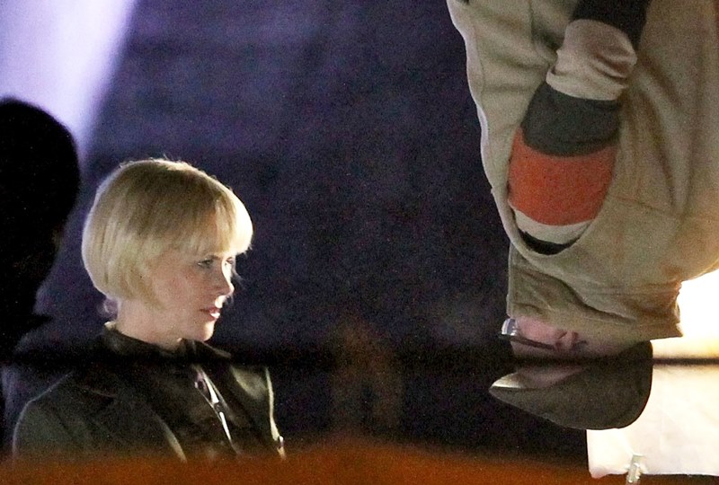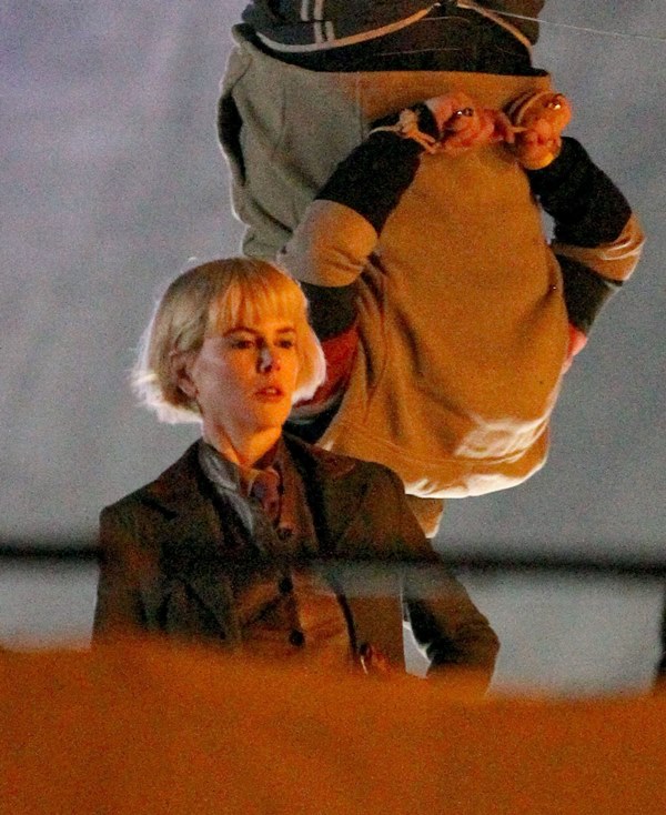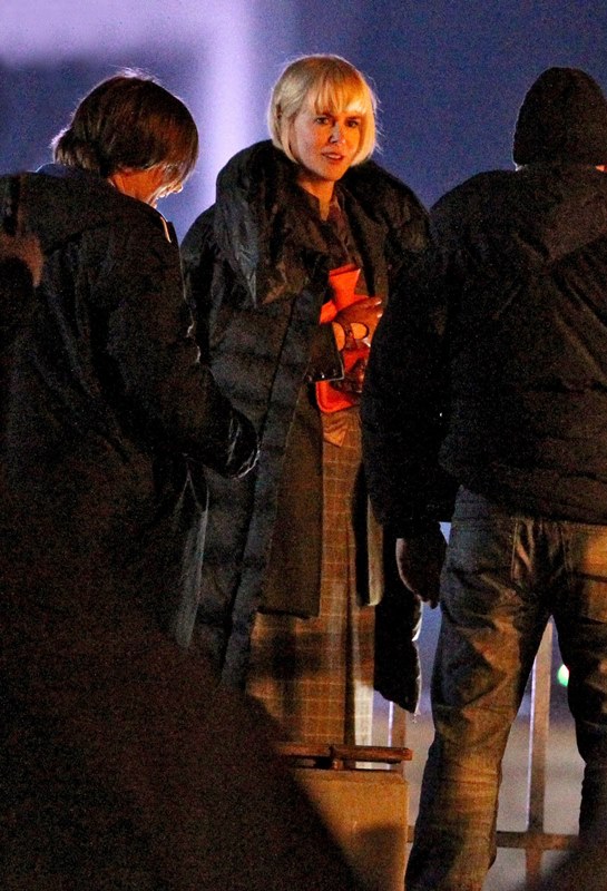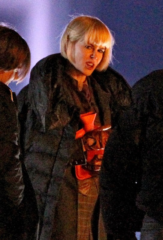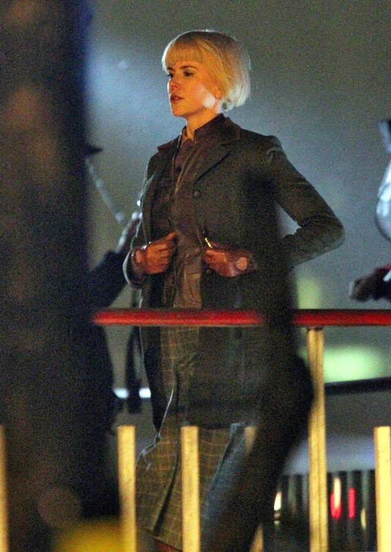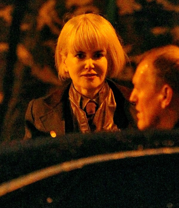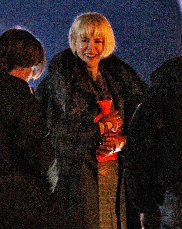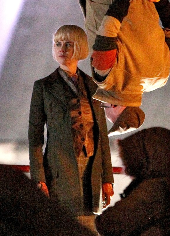 Nicole Kidman is shooting Paddington (yes, about the bear) in London. She plays a bad bitch called Millicent who presumably wants to stuff Paddington and hang him on her wall. As you can see, her character is a blonde, with a fringed bob. I love that a new generation of kids will now think this is the evil lady terrorising them and their teddy friends in bed.