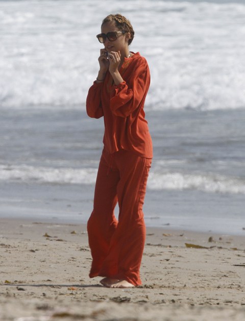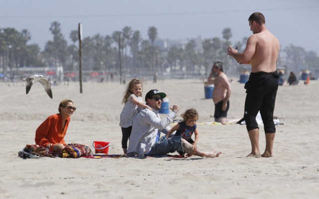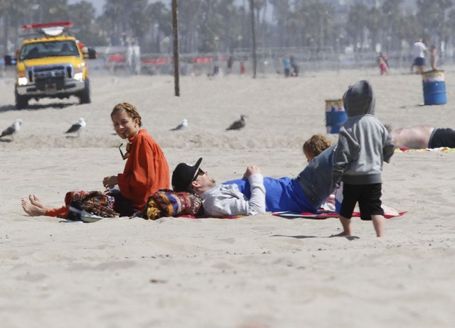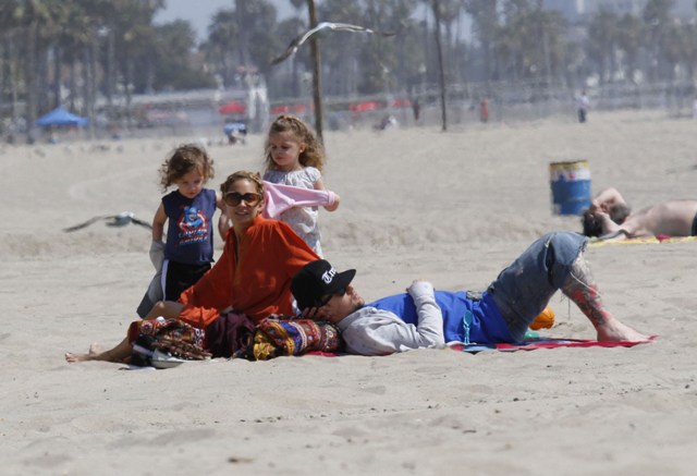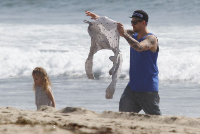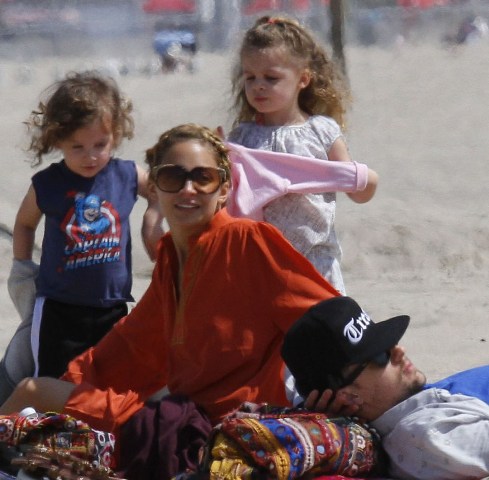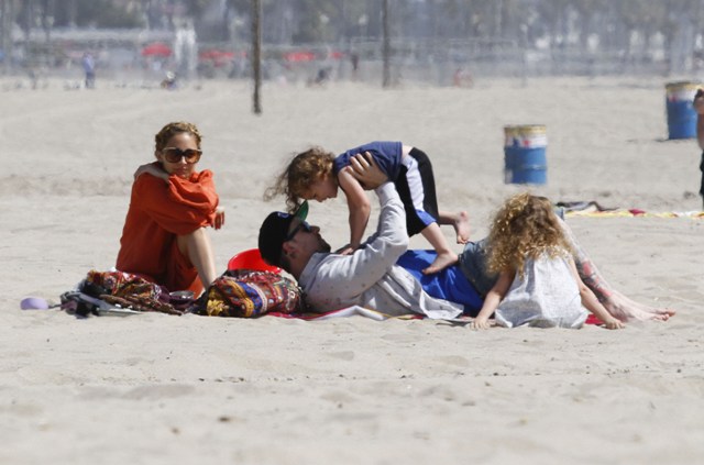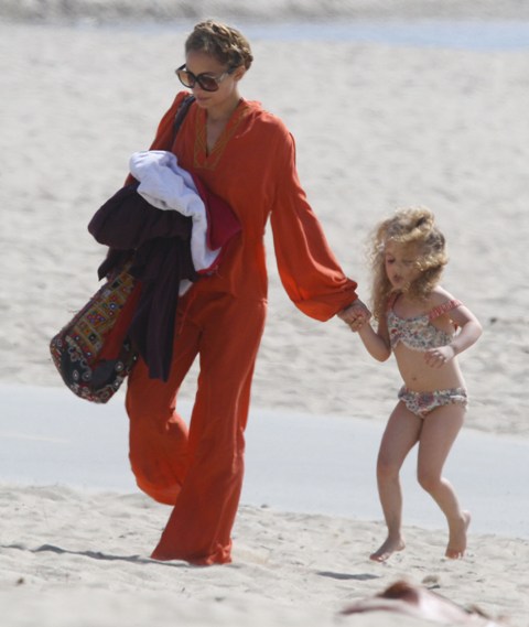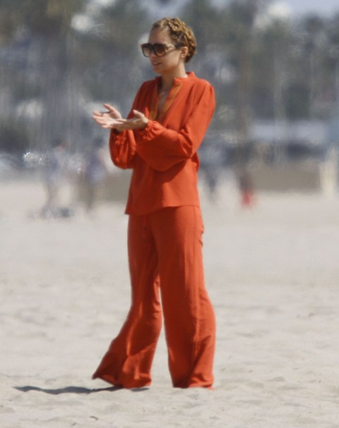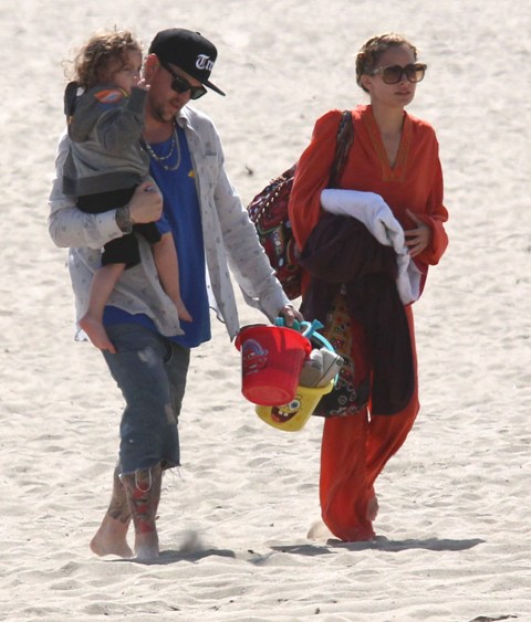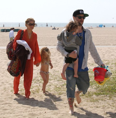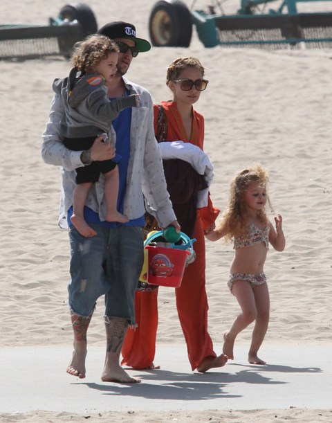 You couldn’t miss Nicole Richie on the beach in Santa Monica yesterday with her husband and kids. How are the ratings for Fashion Star anyway? Last I heard it was hovering around 4 million which isn’t horrible but is far from a runaway hit.