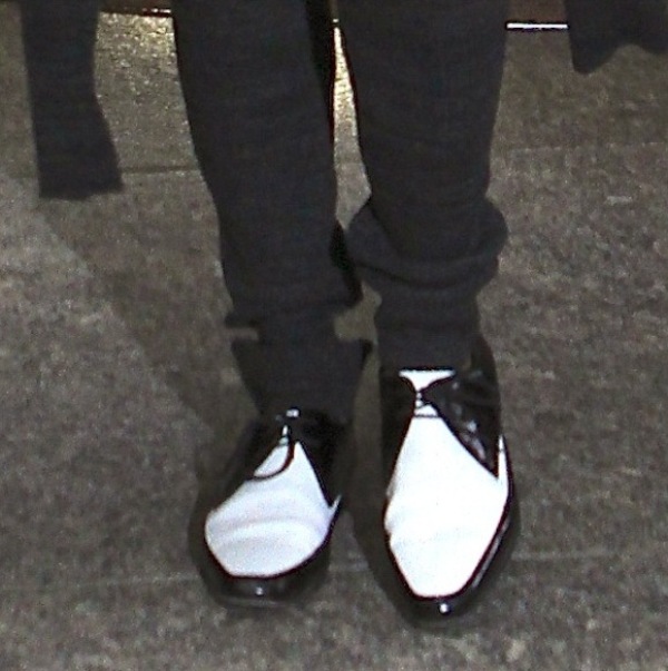 That white edgy shaped top with the leather pants is an awesome look. Not crazy about the dress she’s in here but, as you know, white pumps are my jam and they make the outfit. And finally, look at those black and white oxfords.