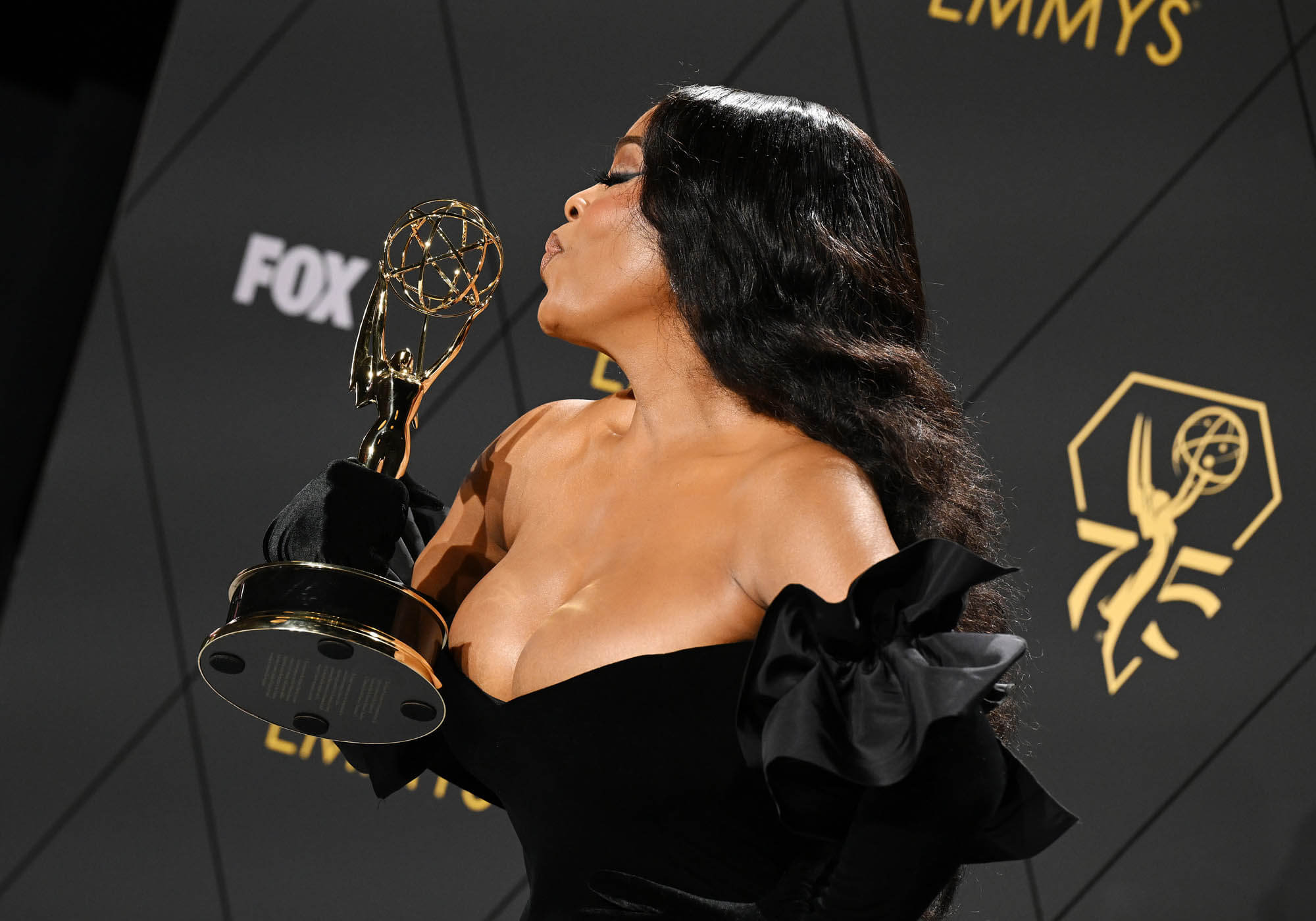 Then, after everyone was cheering and delighted, because who doesn’t love people brave enough to remind the rest of us that appreciating ourselves is actually what you’re supposed to do? That’s when the speech takes a hard left turn, and she shares the trophy with “every black and brown woman who has gone unheard, yet overpoliced”, namechecking Glenda Johnson, Sandra Bland, and Breonna Taylor, causing Issa Rae and Colman Domingo to jump to their feet.