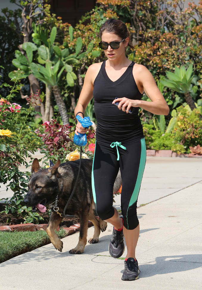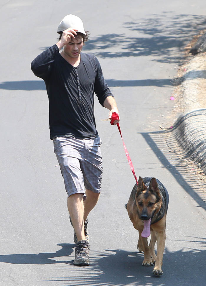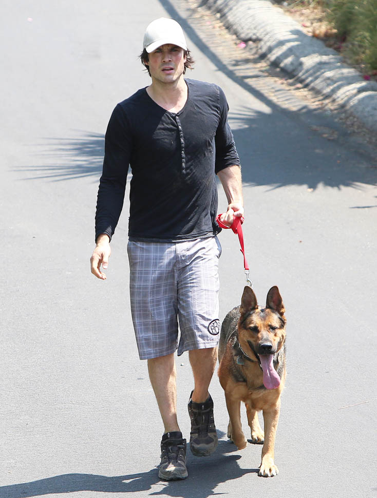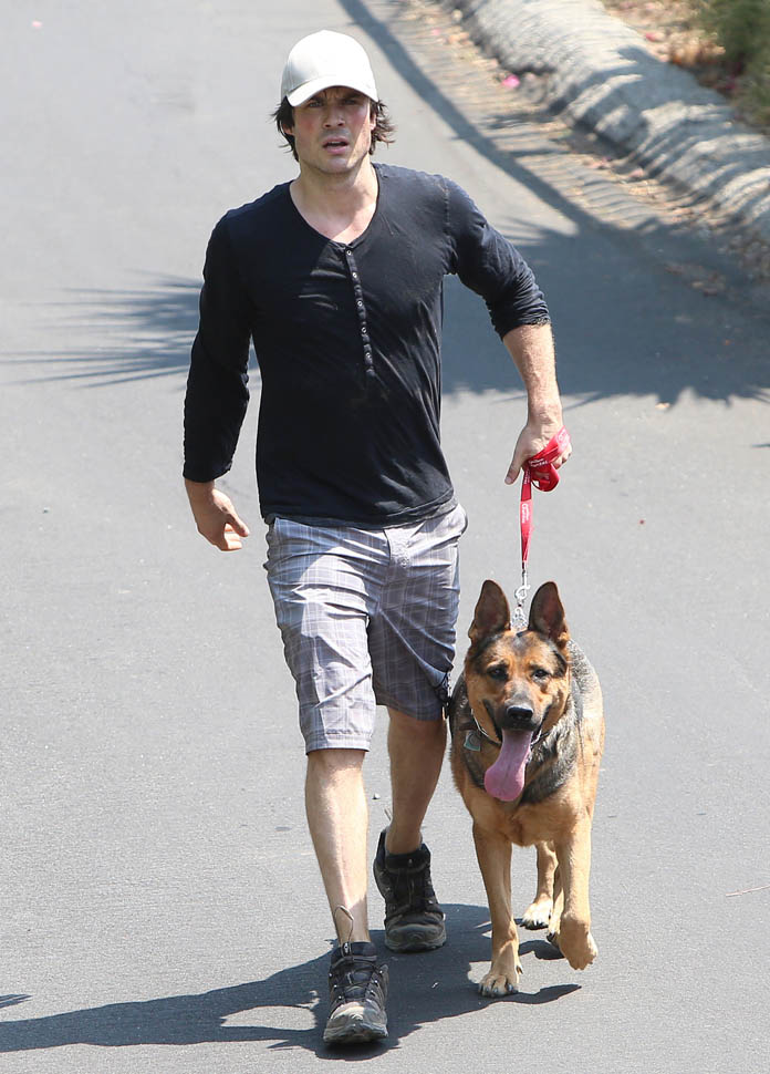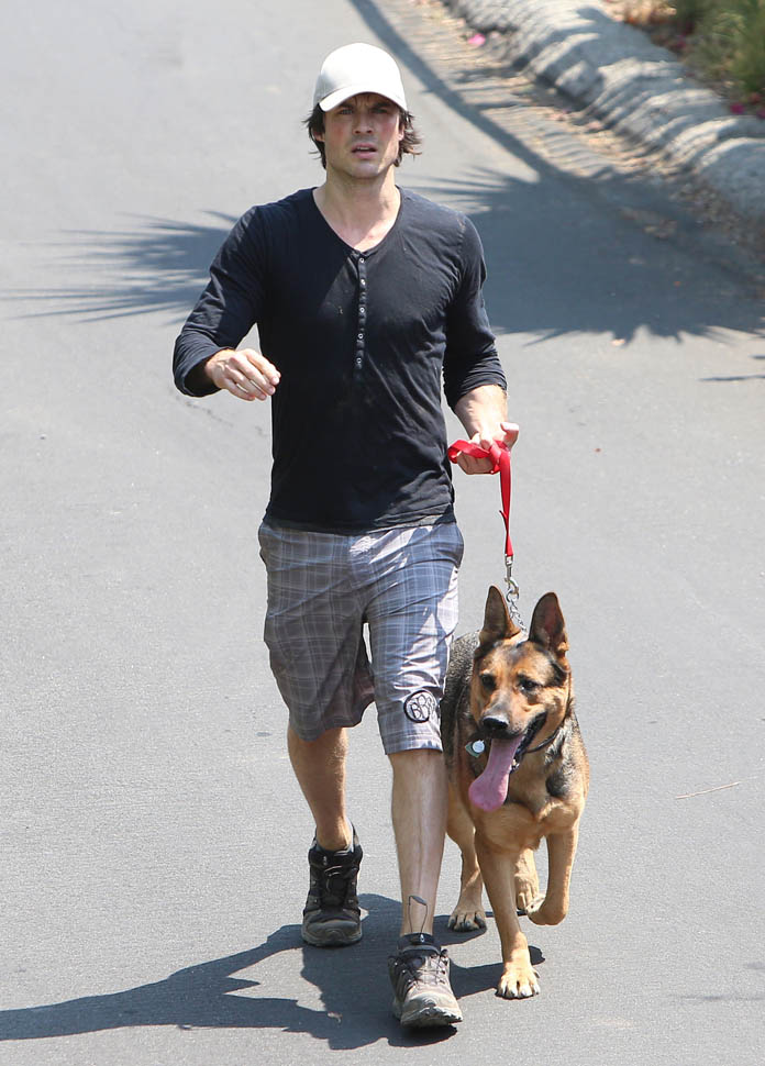 Nikki Reed and Ian Somerhalder went for a run yesterday with their dogs. They apparently both like shepherds. Me too. German Shepherds have the most gorgeous gait. It’s like a loping dance. I appreciate that Nikki interrupted her rhythm to pick up some sh-t. Makes me crazy when runners just leave it because they don’t want to lose time. It’s a poor reflection on other dog owners.