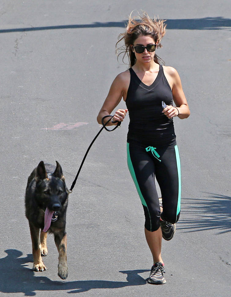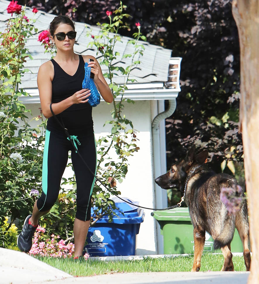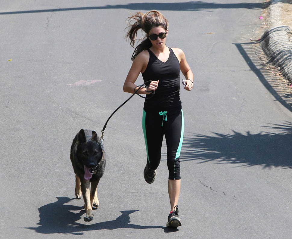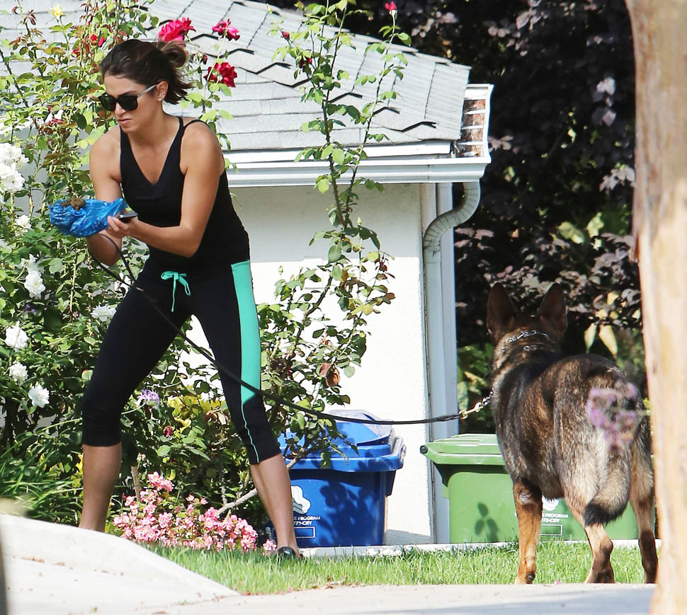 Nikki Reed and Ian Somerhalder went for a run yesterday with their dogs. They apparently both like shepherds. Me too. German Shepherds have the most gorgeous gait. It’s like a loping dance. I appreciate that Nikki interrupted her rhythm to pick up some sh-t. Makes me crazy when runners just leave it because they don’t want to lose time. It’s a poor reflection on other dog owners.