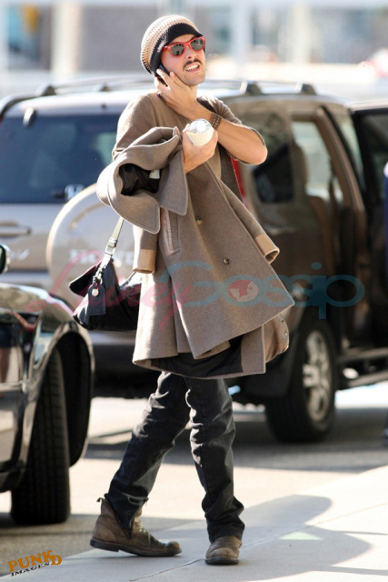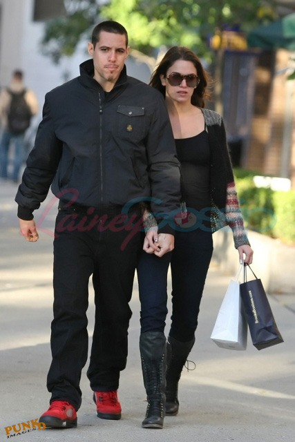Eager to enjoy the sunshine (while it lasts), even though she’d been filming til dawn, Nikki went downtown to do some shopping on Saturday, hand in hand with her man who appears to have recently buzzed his head. Much better than this but that vaginal growth on his chin is a douche alert. Just like wearing Ed Hardy.