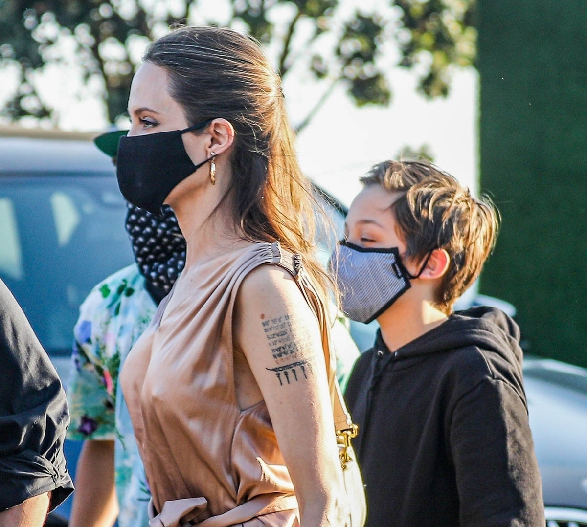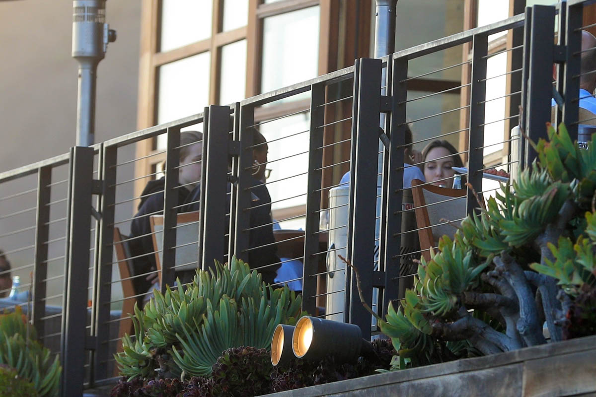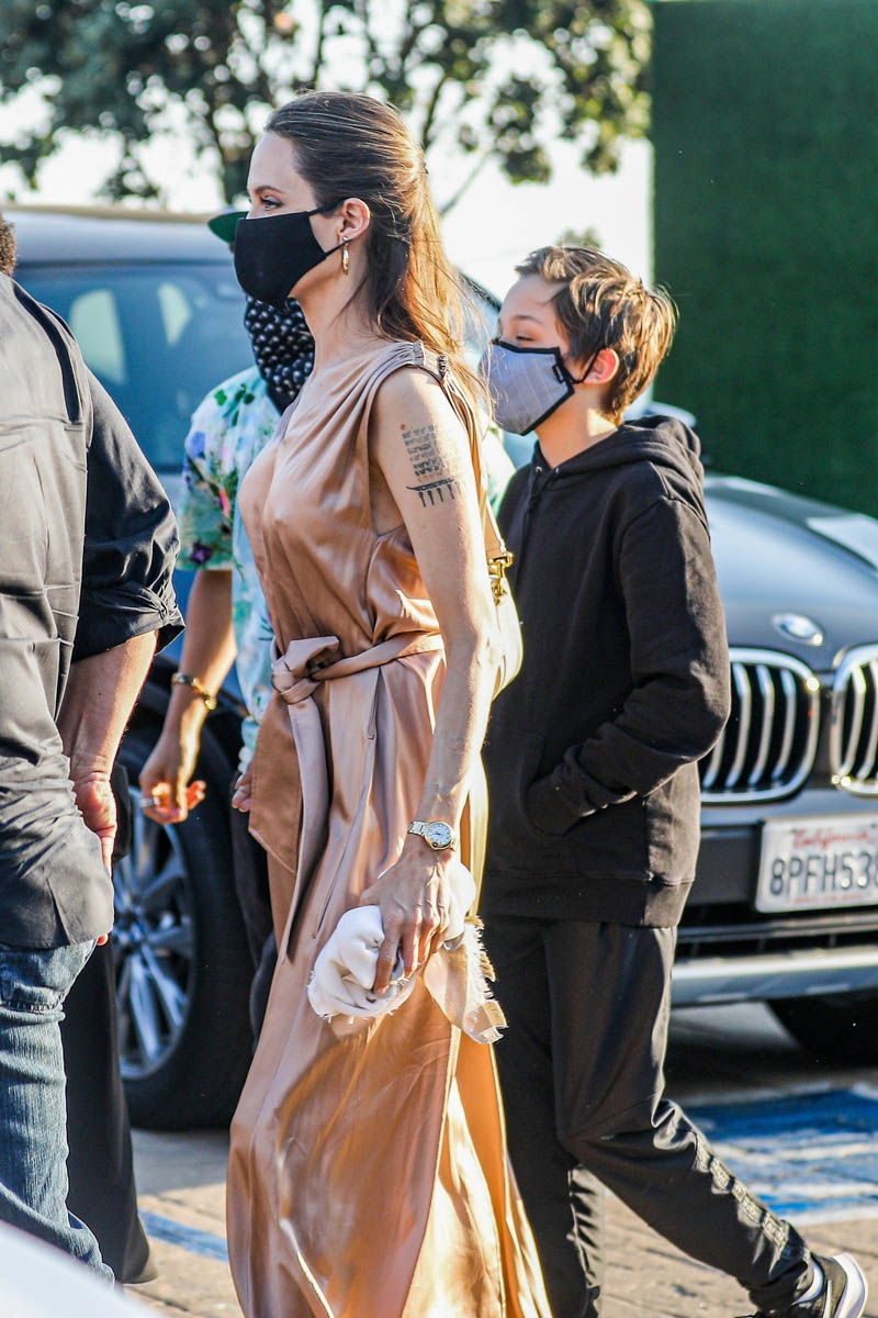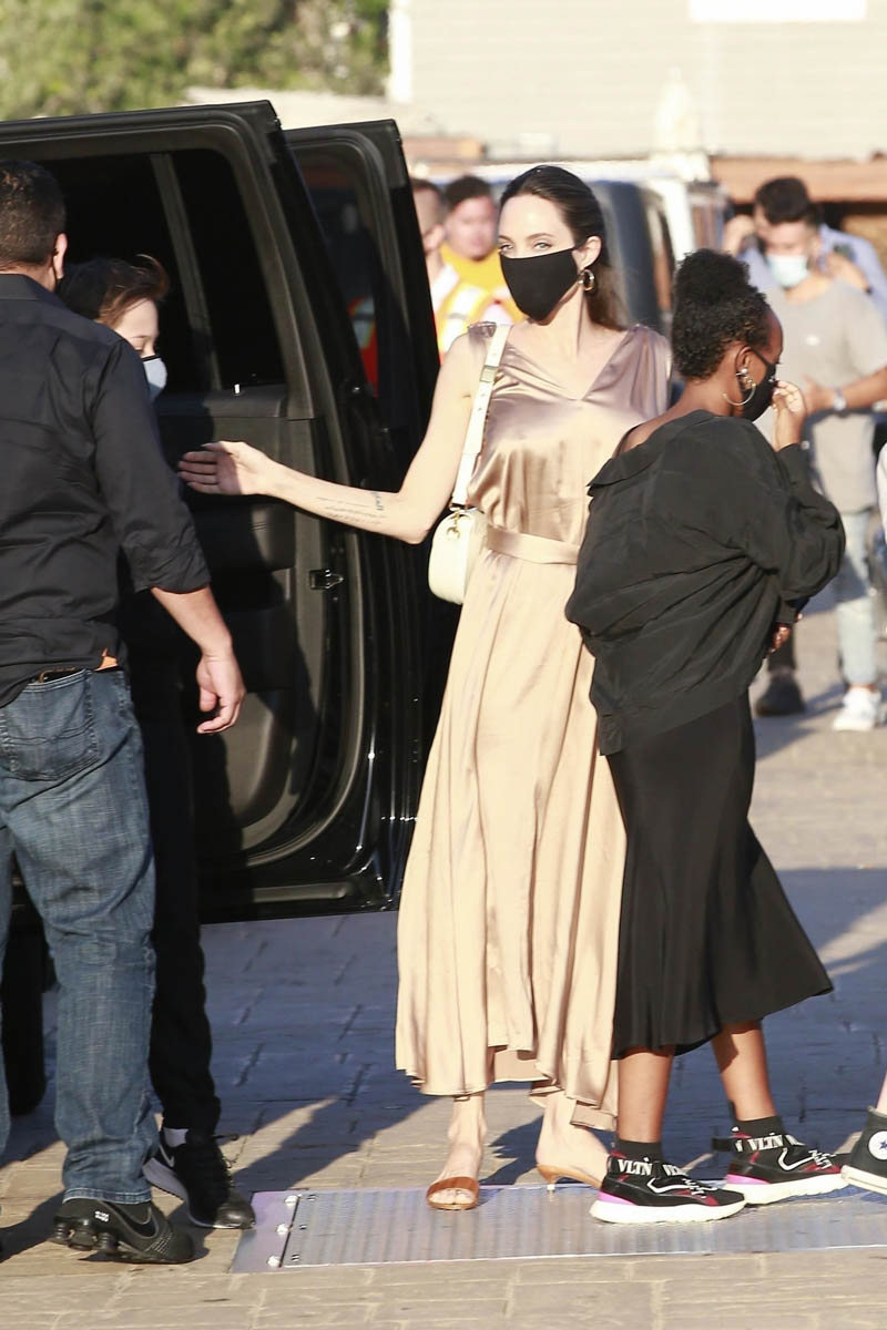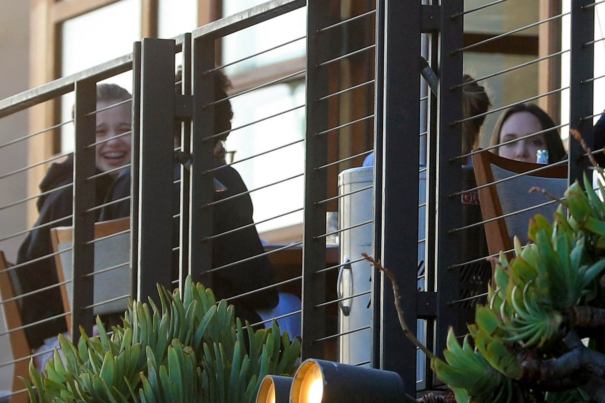 Now it’s Angelina Jolie, yesterday, on her own with those six kids, all of them – Maddox, Pax, Zahara, Shiloh, Vivienne, and Knox – out at Nobu in Malibu. It’s the first time in a while that they’ve been photographed all of them together.