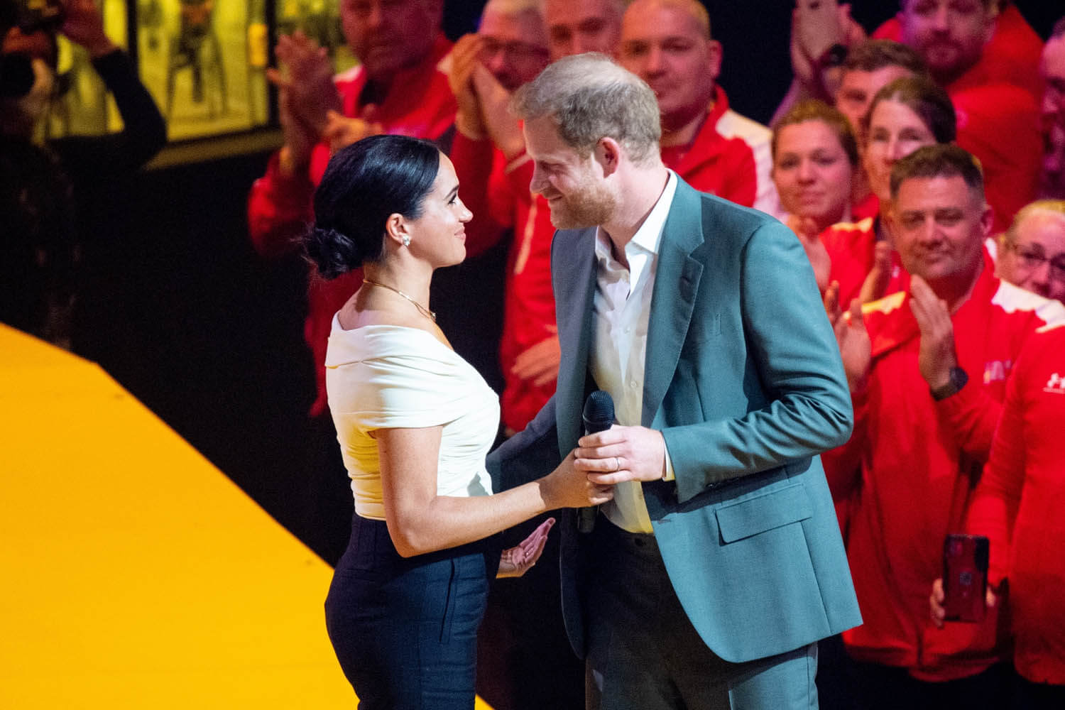 Meghan, Duchess of Sussex gives a speech at the @InvictusGamesNL opening ceremony before introducing Prince Harry to the stage. pic.twitter.com/L3v6fDucZh