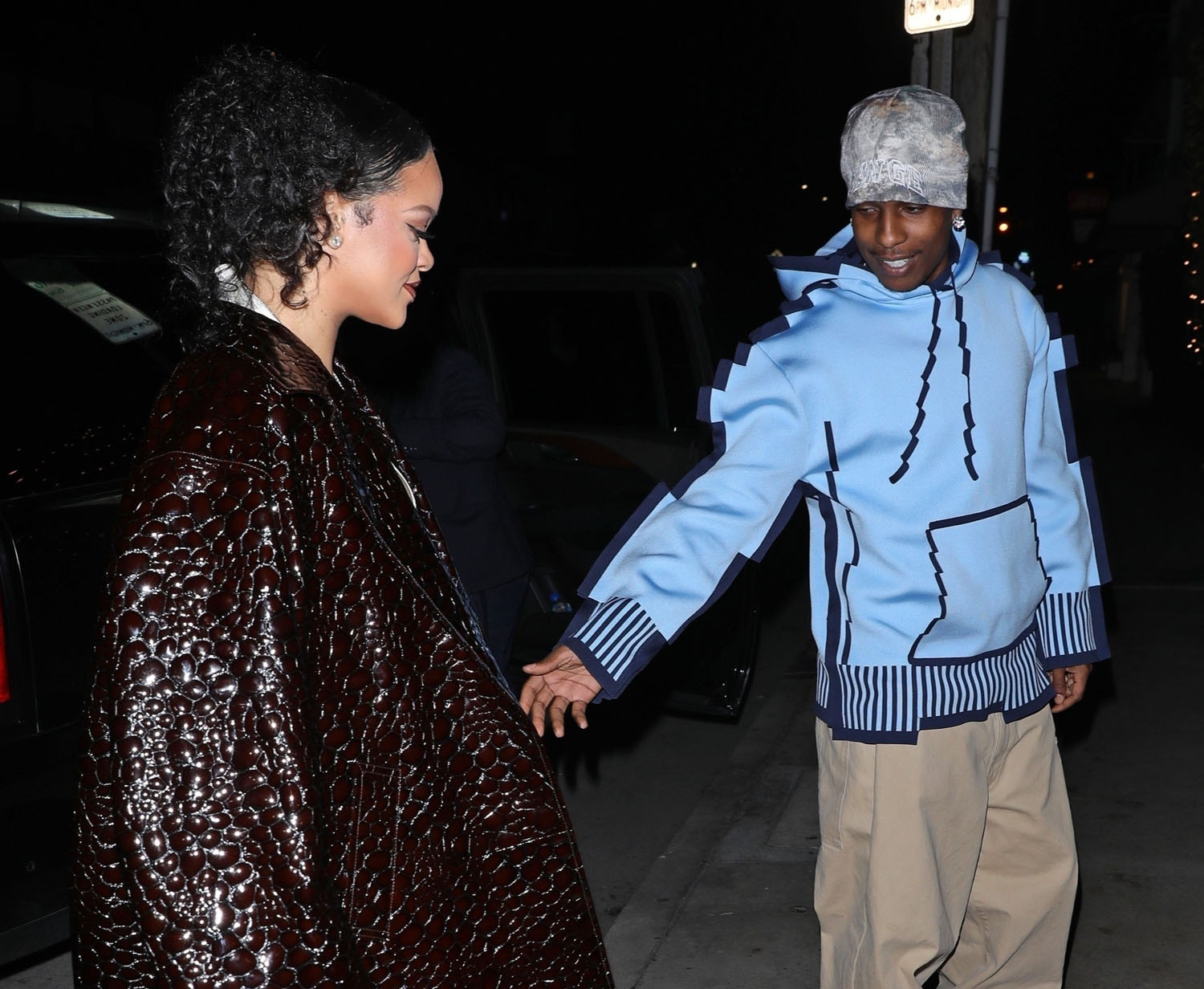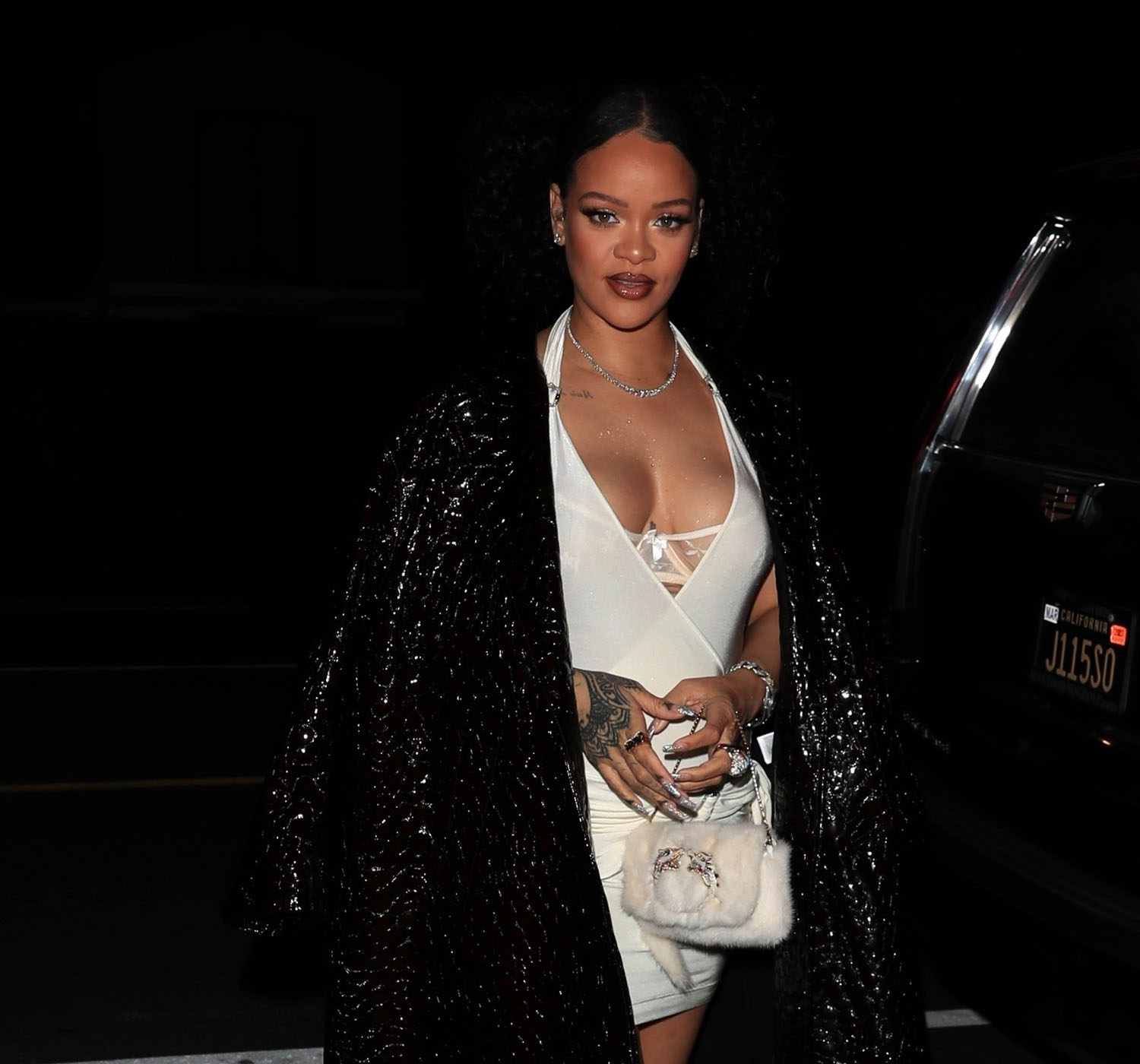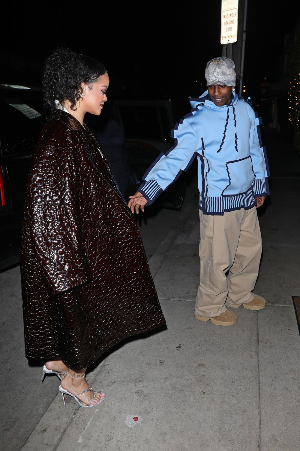 Rihanna was there with A$AP Rocky, her brother Rorrey, and her BFF Melissa Forde. And now comes another round of Rihanna pregnancy fashion. Or, rather, just fashion. A slip dress, a crocodile coat, and perfect makeup, of course. Chic AF.