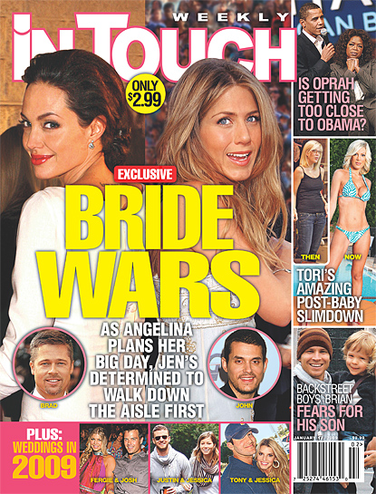Not when a concocted Bride Wars Jolie vs Aniston headline will fly off the MiniVan newsstands.