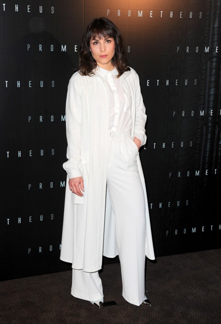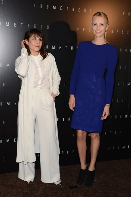 I think I understand the idea behind the all whiteness of her outfit. Like in an alternate universe, the way it looked in her mind (or her stylist’s mind) was way cooler than how it ended up. But this is how it ended up: white from head to toe without any shape and worse still, standing next to the impossible Charlize Theron who, I dunno, looks almost embarrassed to be extra tall and lithe beside Noomi’s white and blobby.