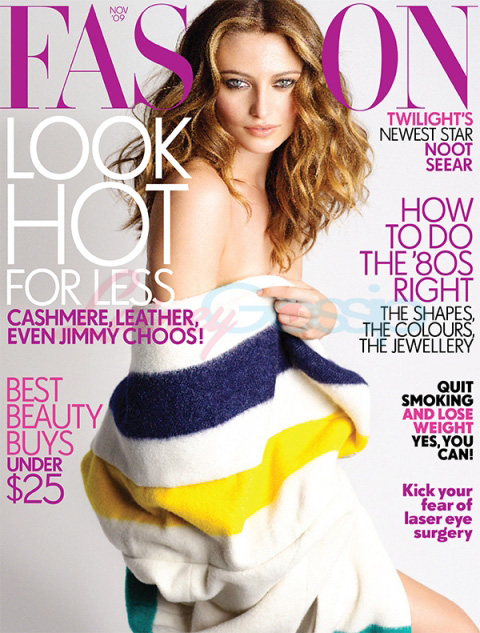 The cover of the new issue of FASHION Magazine has been taken over by a member of the Twilight New Moon cast. Noot Seear is Canadian, from Vancouver, and holy f-cking sh-t what a goddamn face. It would have to be, right? Heidi in the book is the ultimate draw: ridiculously beautiful and irresistibly sexy.