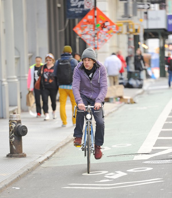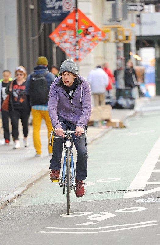 Here he is riding his bike in New York a couple of weeks ago. It’s the almost only time he’s ever papped -- on his bike.