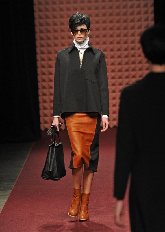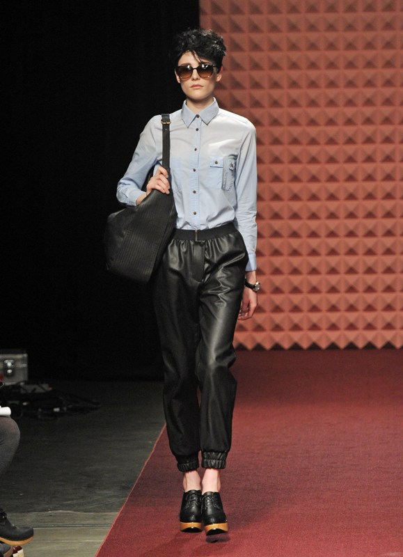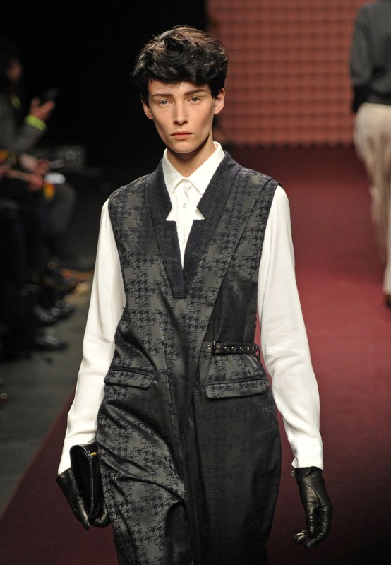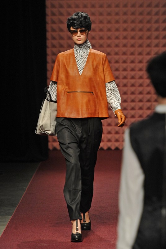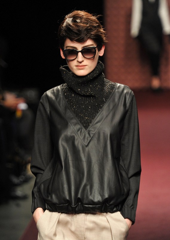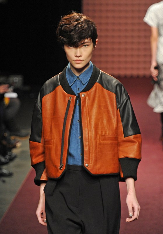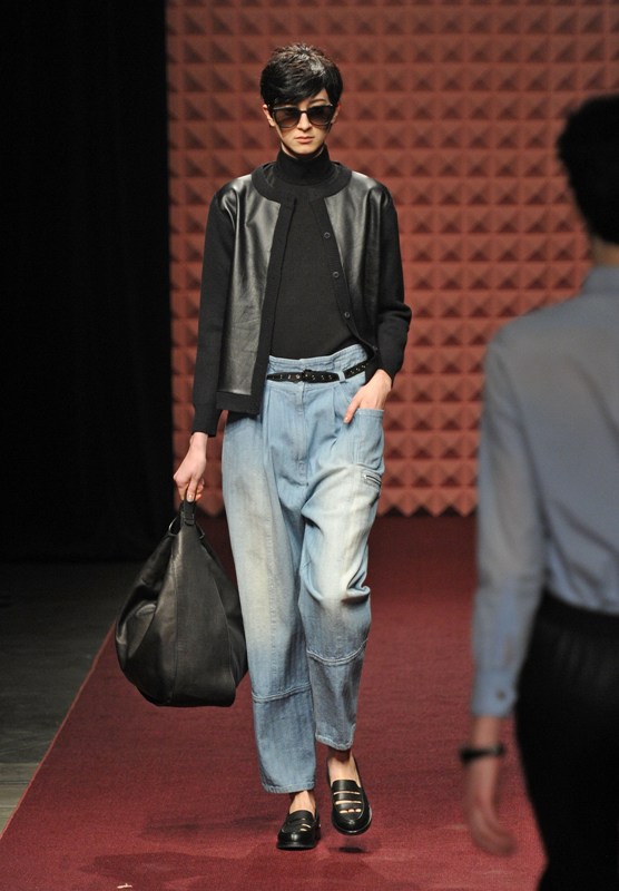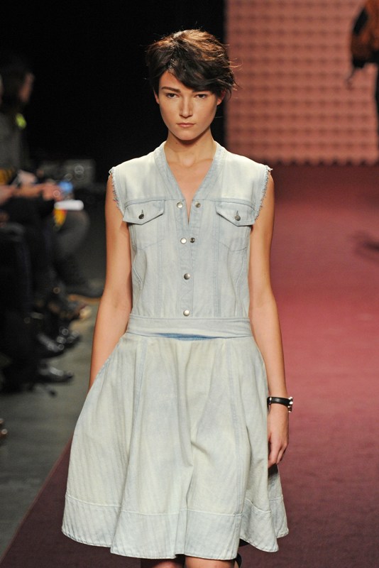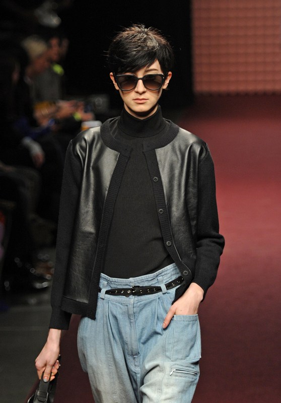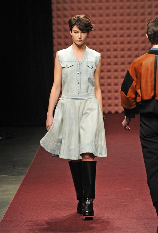 Anne Hathaway’s hair is all over this runway. And the 80s too. Are we going back to high-waisted drop-ass jeans? I don’t think you’ll ever be able to talk me into a denim dress but I will DEFINITELY get down with a leather v-neck sweater.