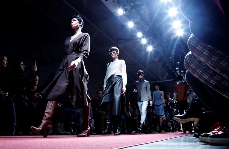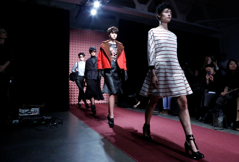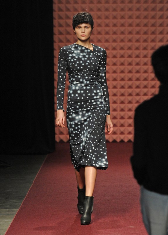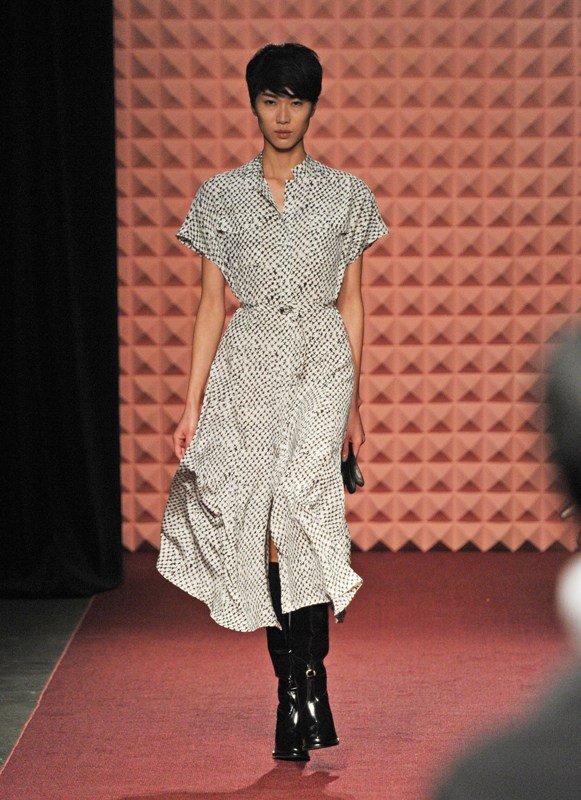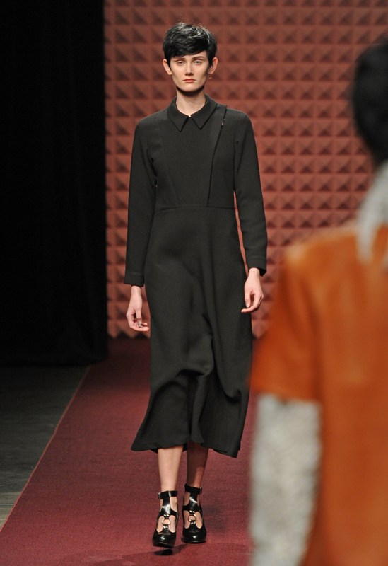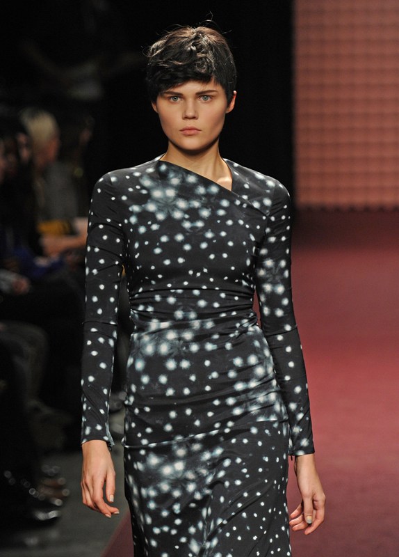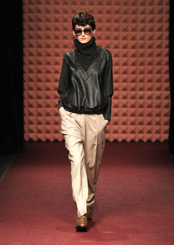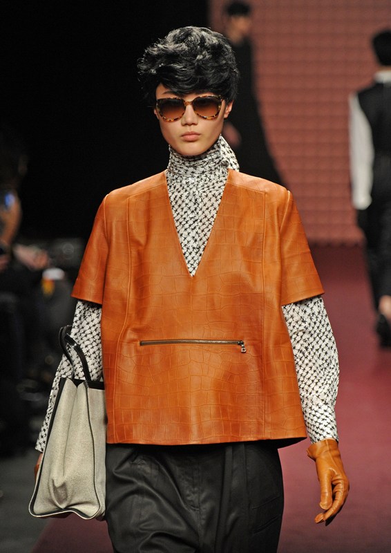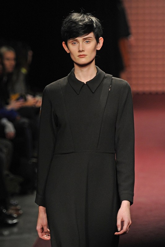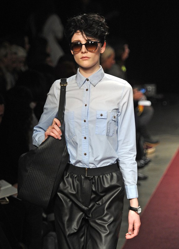Anne Hathaway’s hair is all over this runway. And the 80s too. Are we going back to high-waisted drop-ass jeans? I don’t think you’ll ever be able to talk me into a denim dress but I will DEFINITELY get down with a leather v-neck sweater.