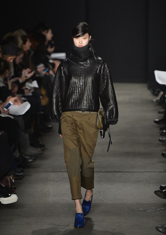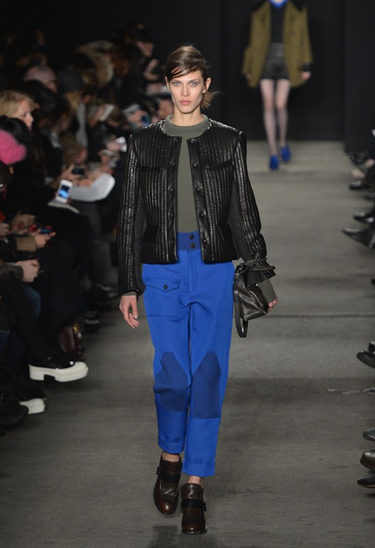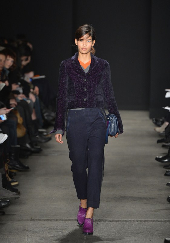 Kinda want a pair of those blue trousers with the dark knees like knee-pads. But I don’t understand what’s going on here with the tights/garters. The layers built in to every piece though is awesome.