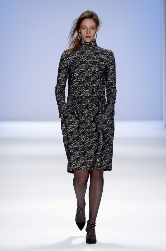 For some reason all I see when I look at these clothes is Jessica Alba wearing them. There’s a velvet dress with a turtleneck and strong sleeves that I like here but otherwise, it’s not too inspiring.