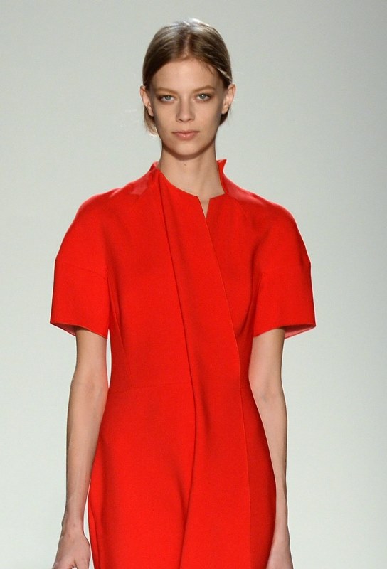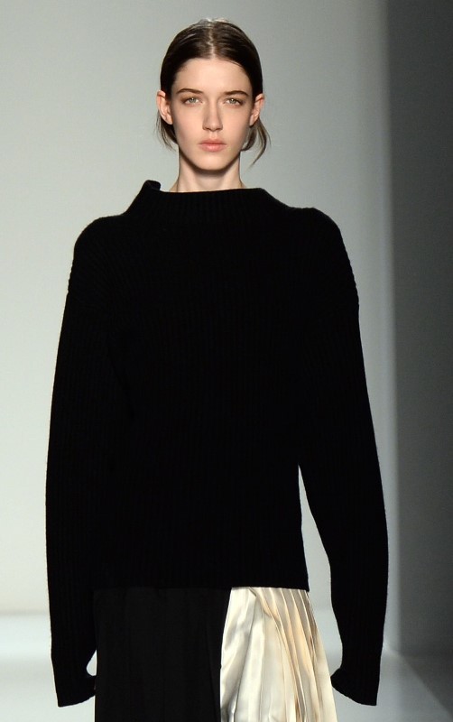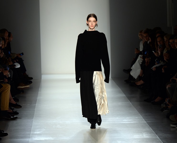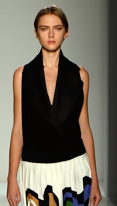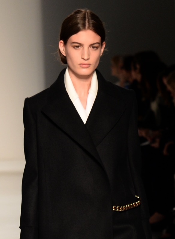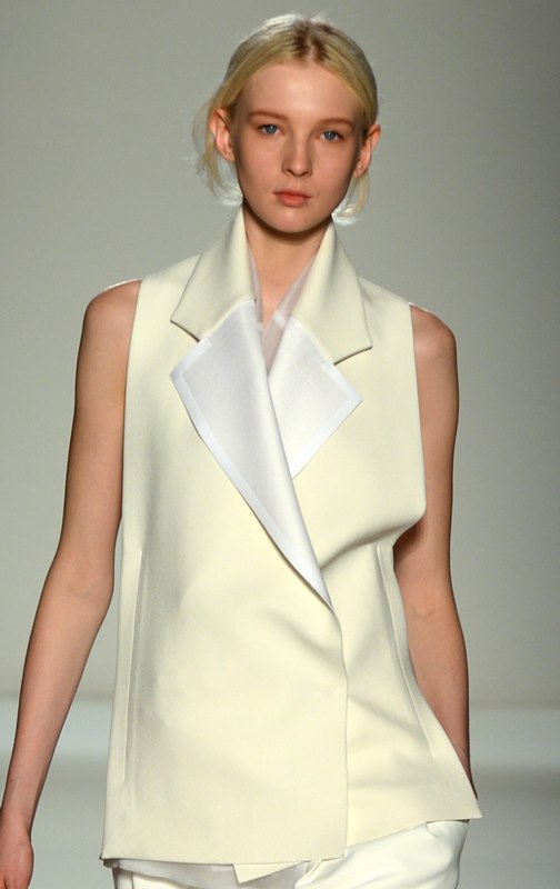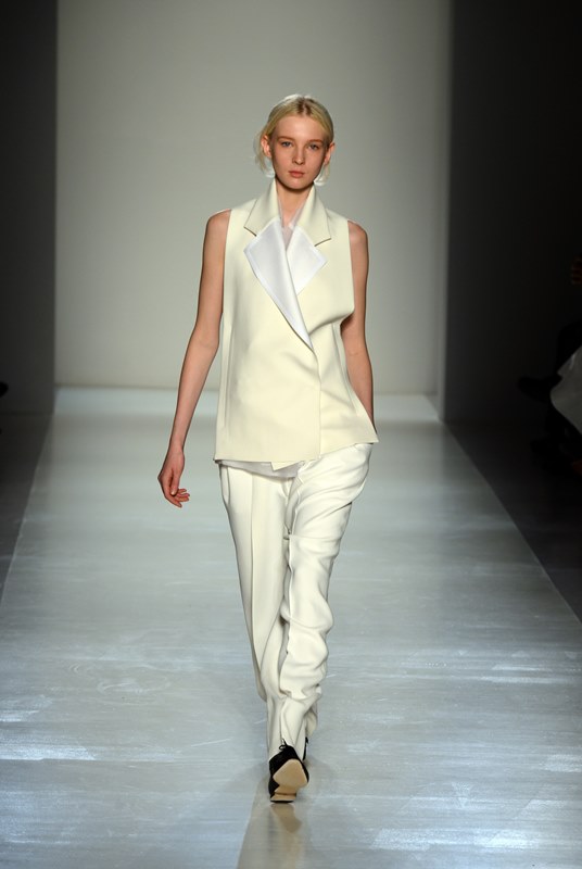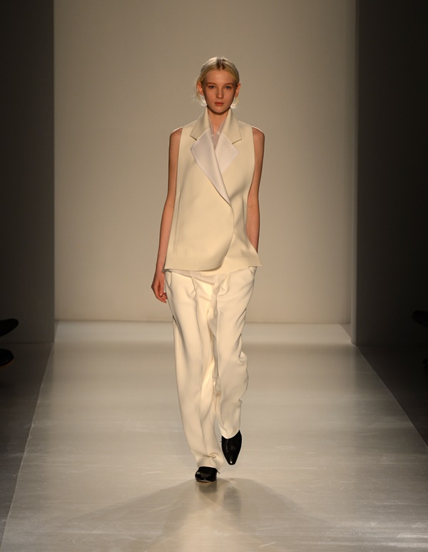 And it’s not too body-con either. Mrs Beckham is in a slouchy, drapey mood. There are some great oversize sweaters here. And a tuxedo vest with giant satin lapels over trousers that fall beautifully on a mannequin. I wonder if they’re cut for curves. She claims her clothes are “paparazzi proof” -- they look good from every angle. The reviews so far have been strong. Some are saying hers is the best collection of the week so far.