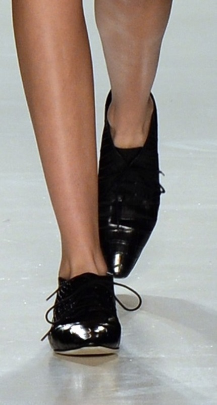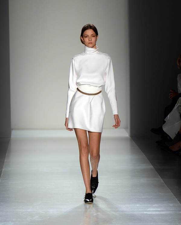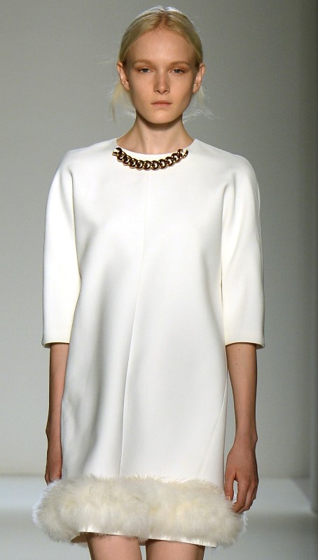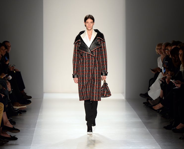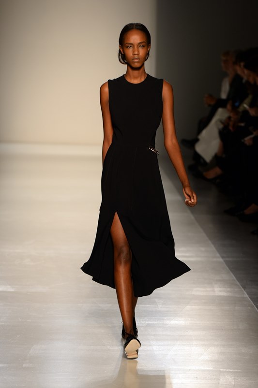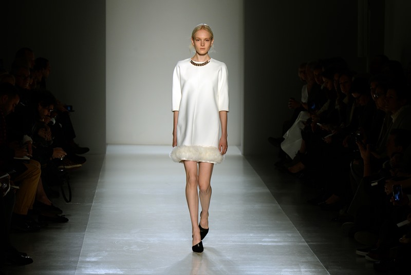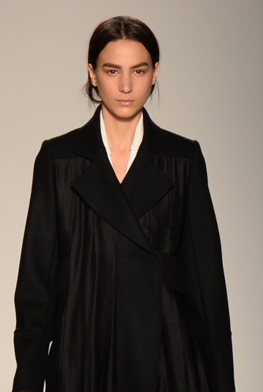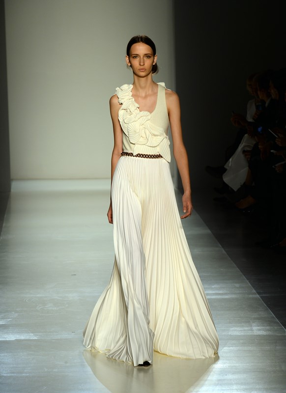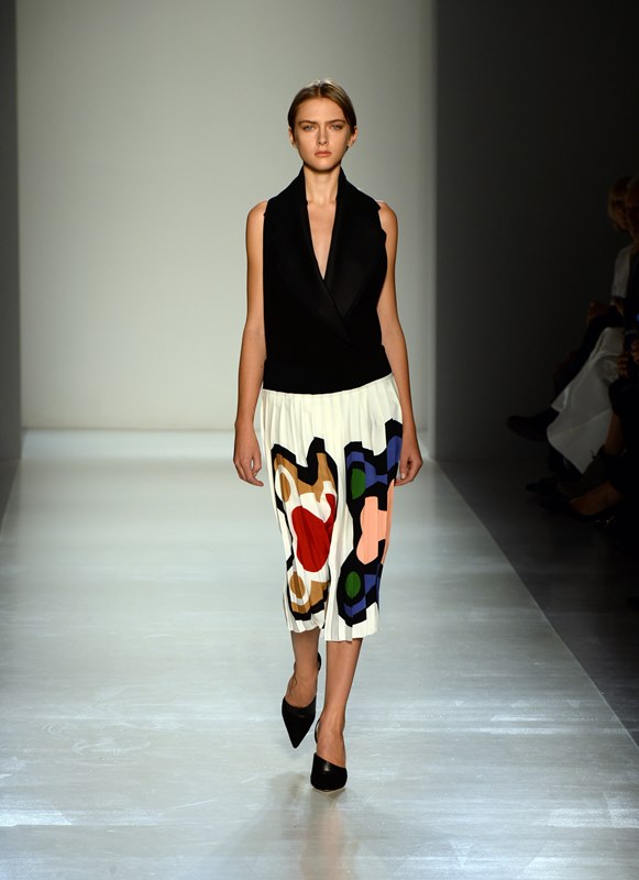 And it’s not too body-con either. Mrs Beckham is in a slouchy, drapey mood. There are some great oversize sweaters here. And a tuxedo vest with giant satin lapels over trousers that fall beautifully on a mannequin. I wonder if they’re cut for curves. She claims her clothes are “paparazzi proof” -- they look good from every angle. The reviews so far have been strong. Some are saying hers is the best collection of the week so far.